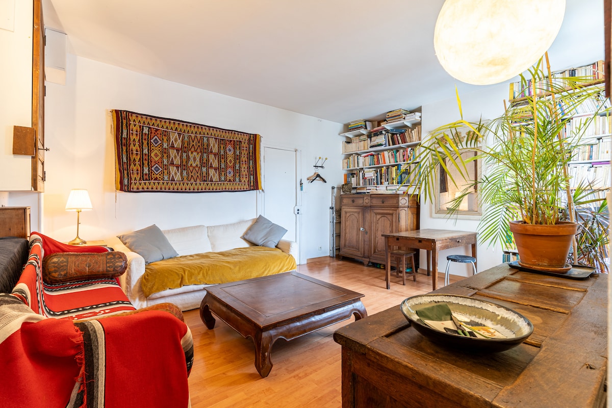 Dos grandes habitaciones (estilo loft de 65 m2) abiertas a 7 grandes ventanales soleados sobre los tejados del París histórico, apartamento del siglo XIX renovado por un decorador de cine, que combina el encanto de lo antiguo con el confort moderno. Ascensor, doble acristalamiento, aire acondicionado, cama de 180, gran vestidor, TV de alta definición de pantalla grande, fibra óptica, cocina equipada, bañera... lo convierten en un lugar de gran confort, tranquilo y relajante en un barrio efervescente y muy actual donde el arte y la cultura están en el punto de mira.