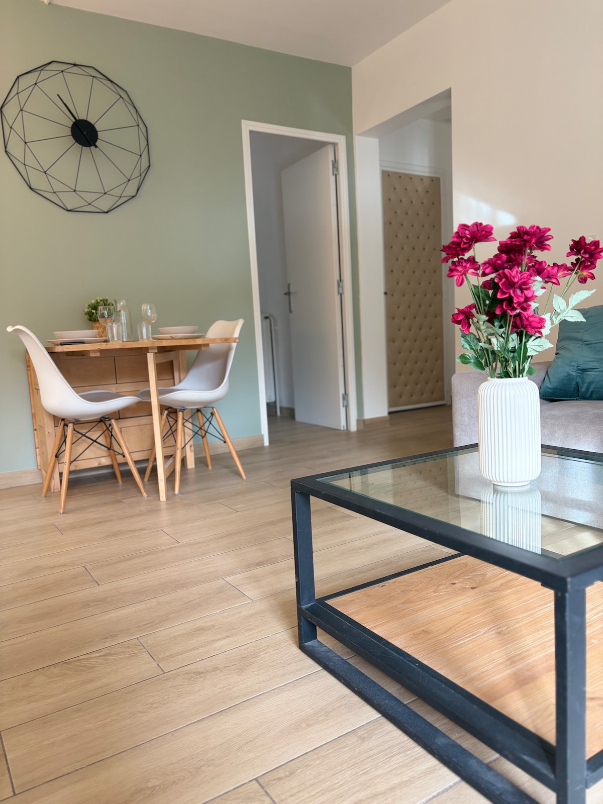 Bonito T2 con aire acondicionado en la planta baja con garaje cerrado en urbanización con seguridad con cocina equipada y terraza. Encontrará todas las comodidades necesarias para su estancia corta o larga gracias a su dormitorio con una cama de 160 cm x 200 cm y su sala de estar con un sofá cama. Además, dispondrá de lavadora y mucho espacio de almacenamiento. El alojamiento se encuentra en el barrio de Caillols, cerca de todos los servicios, a 2 pasos de la terminal del tranvía y de un hipermercado