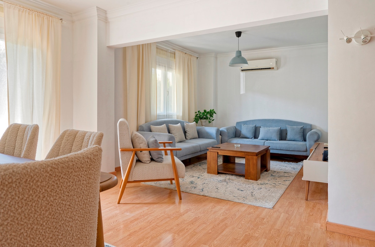 Alojate a solo 1,4 millas (7 minutos) del aeropuerto de El Cairo, con una hermosa vista del aeropuerto y el jardín delantero, todo sin ruido de aviones. Traslado desde el aeropuerto🚖 gratis y traslado desde el hotel a un precio asequible 🔑 Check-in sin anfitrión con tu PIN privado Wifi ⚡ rápido para viajes de trabajo o streaming 🚗 Uber, siempre a tu disposición 🥘 A solo unos pasos (1–3 minutos a pie) de restaurantes, cafés, supermercados