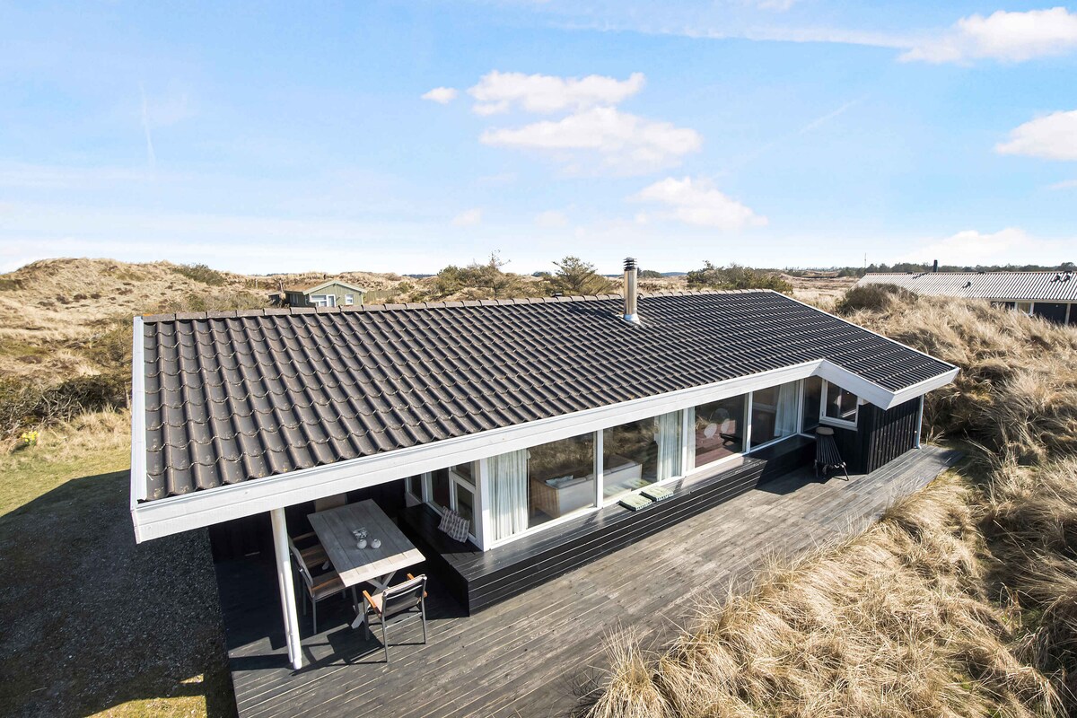 The perfect holiday home for peace and relaxation This holiday home is ideal for those seeking a break from everyday stress. A place to relax all year round. The holiday home offers: -Sauna -Hot tub -Outdoor shower with hot and cold water -Private and secluded grounds with unique outdoor areas The beach is only 1.2 km away. Comfort and coziness: -Wood-burning stove and air conditioning -Outdoor kitchen -Pizza oven and grill -5G WiFi and Chromecast -Bicycles available for free use