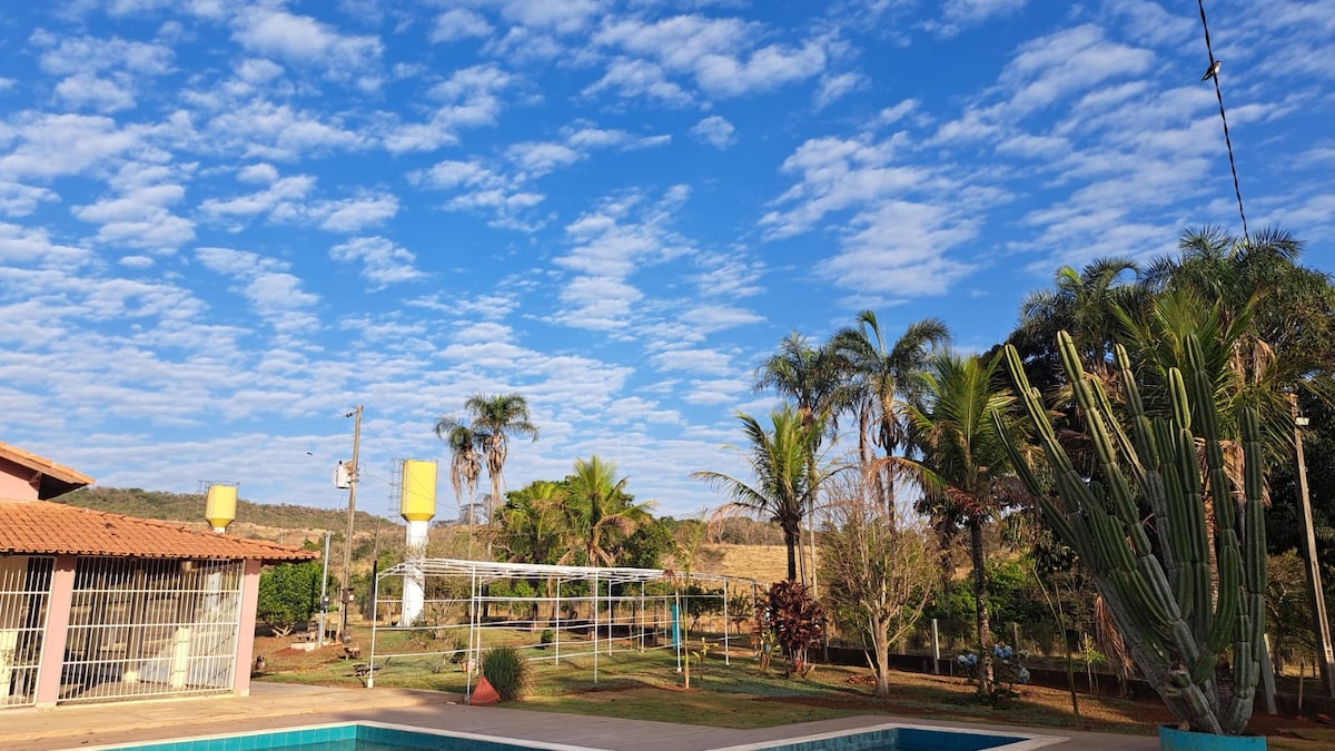 Aqui, a pressa fica do lado de fora e cada momento vira lembrança. No Recanto Mangueira, os dias começam com mergulhos na piscina sempre quentinha e terminam com histórias e risadas ao redor da churrasqueira. A mangueira centenária e mais de 100 jabuticabeiras abraçam esse refúgio de paz. A casa sede e as suítes externas garantem conforto. A 100m, a cachoeira e um deck de madeira convidam ao descanso e à pesca. A 21km de Abadiânia, com 10km de estrada de terra tranquila!