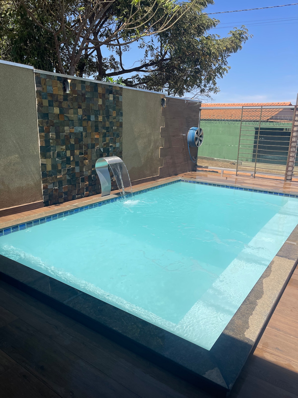 Casa Única e Exclusiva no Condomínio de Mais Alto Padrão na Beira do Lago Corumbá 4: O Recanto Moreira possui uma estrutura completa e novíssima, juntando o luxo com o campo. São 5 suítes completas c/ ar condicionado, ampla área externa com piscina (hidromassagem e cascata), churrasqueira, acesso privativo ao lago, quiósque e portaria segurança 24 horas. Cozinha toda mobiliada e decorada. -Todo Quartos c/ Ar condicionado -1 minutinho você está na beira do lago -Piscina c/ Aquecimento Elétrico