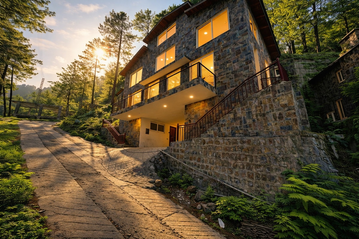 Escápate a un tranquilo refugio de montaña en Bhurban, Pakistán, y relájate en nuestra encantadora casa de campo de estilo suizo de 3 dormitorios. Perfecta para familias o grupos pequeños, esta acogedora escapada ofrece: - Amplios dormitorios con luz natural. - Totalmente equipado con comodidades modernas. - Aparcamiento privado gratuito. - Impresionantes vistas a las montañas. - Entorno tranquilo en medio de una exuberante vegetación. Disfruta del senderismo, explora Bhurban o relájate cómodamente. ¡Reserva ahora y experimenta la tranquilidad!