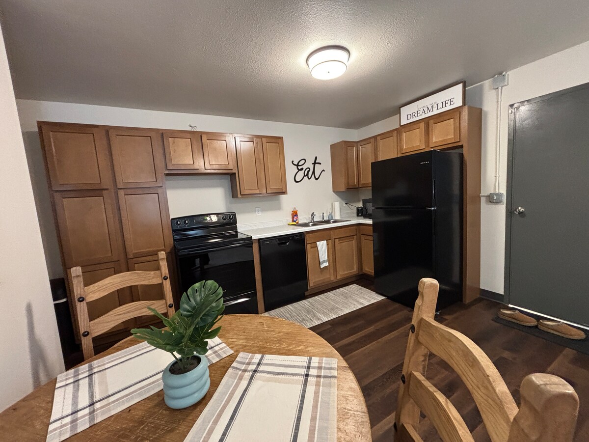 Melrose Central is a ranch style, 4 bedroom home near landmarks in our community. The main floor has a kitchen w/ new appliances, living room, 2 bedrooms w/ King beds, a full bath, a half bath, & a 1 stall, heated, attached garage. Downstairs you will find an area for laundry, 2 bedrooms, a shower room & a common area. We are close to Central HS, NSU, Walmart, Target & the main business strip. Just a few minutes away from many restaurants. Pets allowed only in the heated garage.
