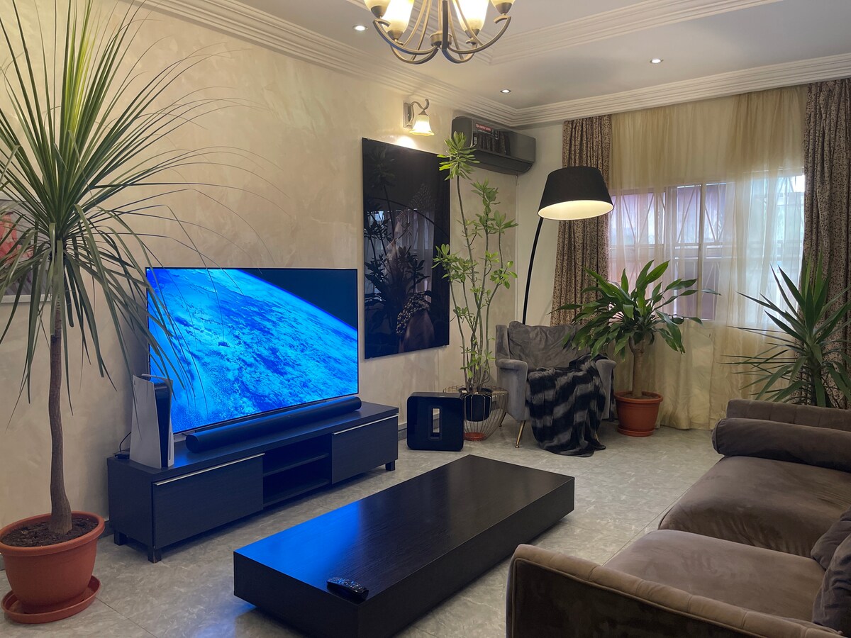 El apartamento de lujo está situado en una zona serena de Riverpark Estate, a 10 minutos en coche del aeropuerto de Abuja, a 15 minutos en coche de la zona central del distrito de negocios: las tiendas de comestibles, farmacias y restaurantes están a 5 minutos a pie del apartamento y a 5 minutos en coche de la tienda para divertirse, ver películas y actividades de compras. Seguro que es un hogar lejos de casa .