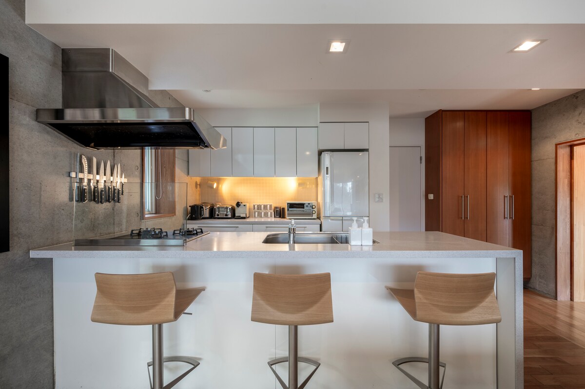 Asobidokoro es una villa japonesa moderna en un rincón tranquilo de Lower Hirafu, a solo 15 minutos a pie de los ascensores Grand Hirafu, con una parada de traslado cercana. Rodeado de restaurantes y bares, es perfecto para familias que buscan una estadía tranquila sin sacrificar la comodidad. En el interior, el diseño de inspiración japonesa se combina con la comodidad moderna, con un comedor hundido, una chimenea a gas, una cocina con isla y un cuarto de servicio. Dos de los dormitorios tienen baño en suite, incluido el principal, que cuenta con una bañera profunda de estilo japonés.