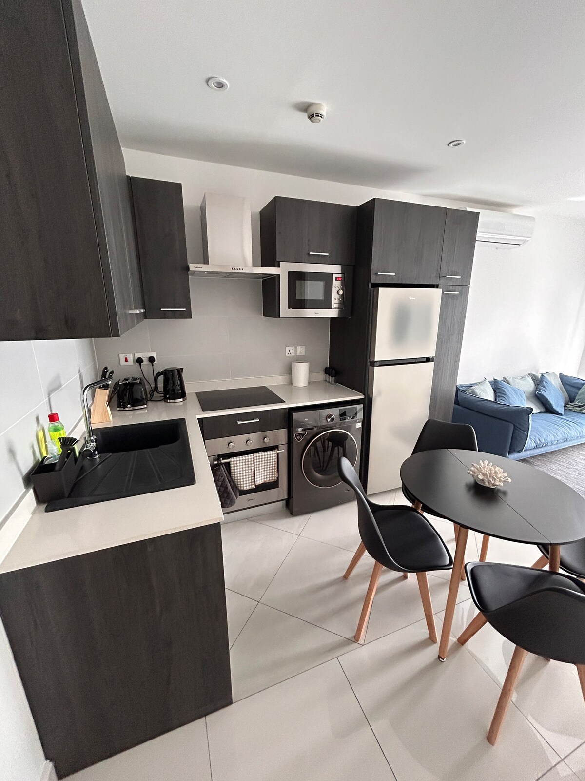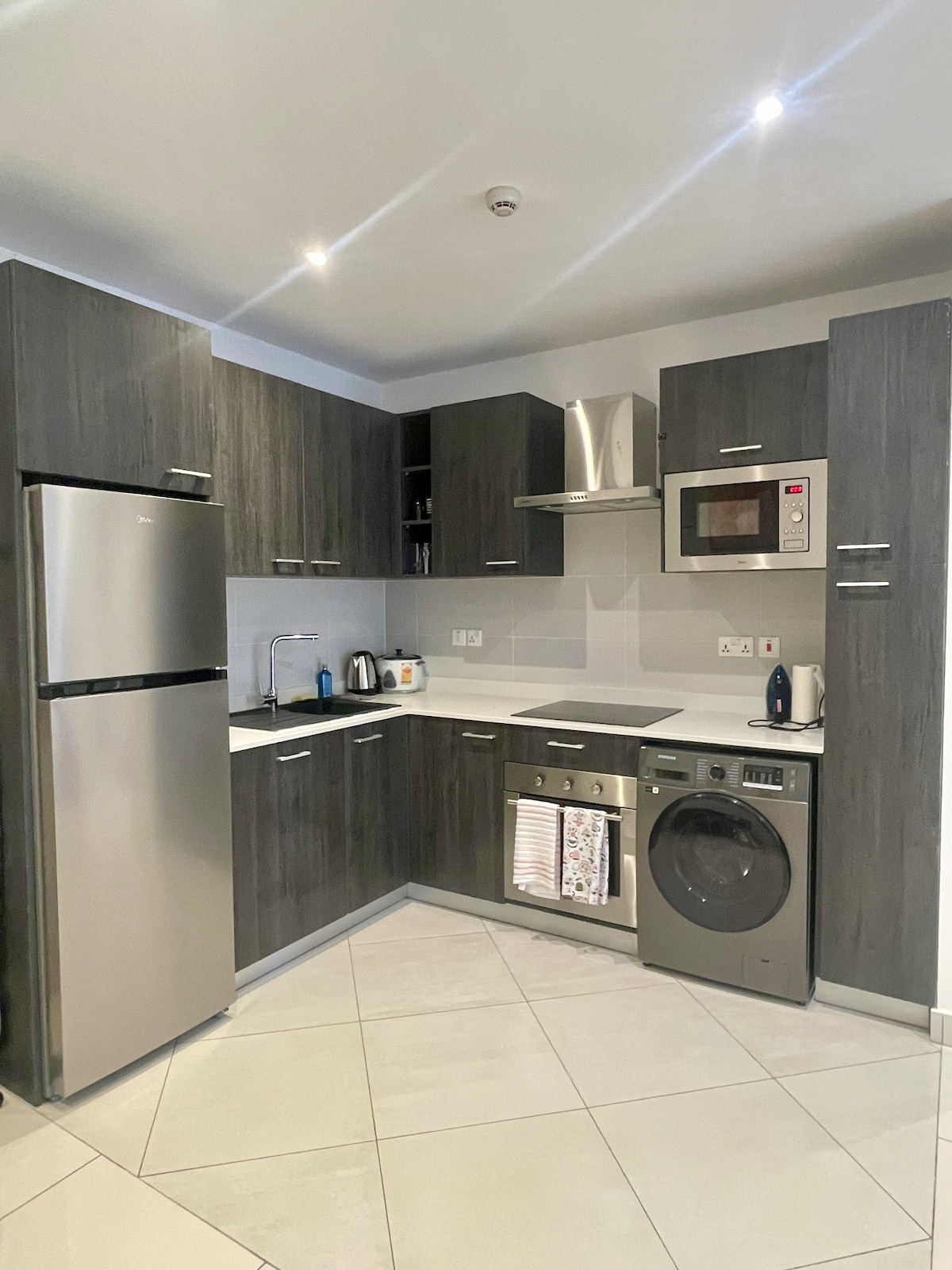 This beautiful studio is conveniently located less than 10 minutes from the airport and directly opposite Accra Mall in East Legon. The apartment is fully air-conditioned and features free unlimited high-speed internet, DSTV, and a fully equipped kitchen with a washer and dryer for your convenience. Guests can enjoy access to a rooftop swimming pool offering breathtaking panoramic views of the city, a modern gym, free basement parking, and 24/7 security at this newly opened facility.