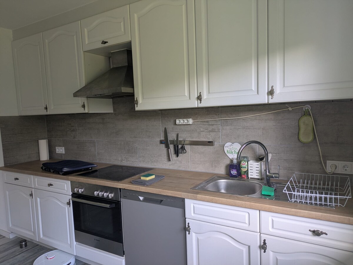 Hermoso y acogedor departamento para relajarse en el departamento completamente renovado y modernamente amueblado. Aquí, no hay deseos que queden sin cumplir. El apartamento está en el 2º piso de una casa de dos familias. - Espacio habitable de 75 metros cuadrados. - un dormitorio con una cama doble. - Sala de estar con sofá cama grande. - Cocina totalmente equipada - acogedor comedor - Moderna ducha con toallas, secador de pelo y artículos de aseo. - Wifi gratuito - Smart TV - Sala de bicicletas (opción de carga para bicicletas eléctricas)