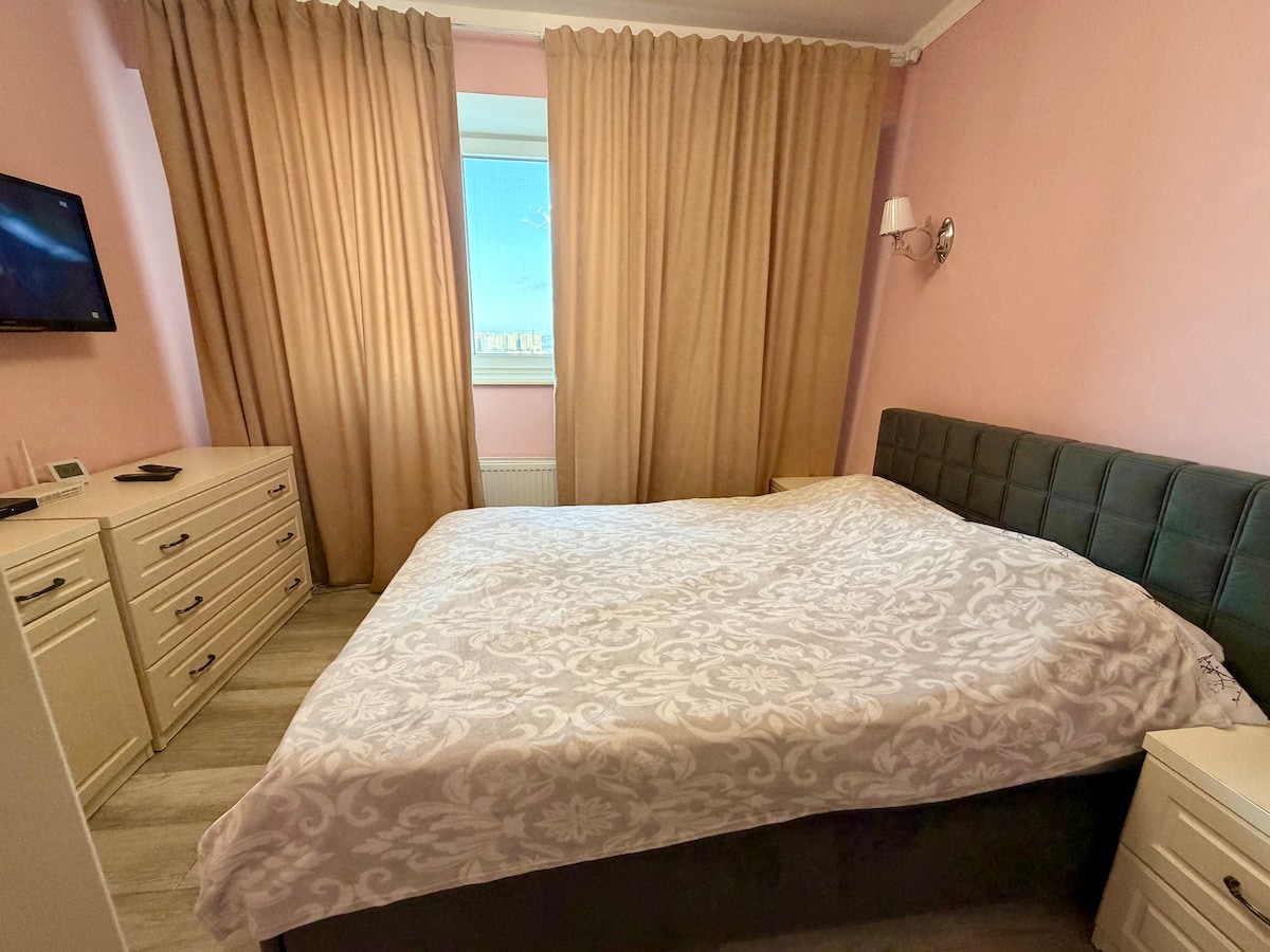 Un departamento cómodo (nuevo), luminoso, totalmente equipado (aire acondicionado, lavadora, lavavajillas, cafetera, tostadora, ropa de cama, toallas, vajilla... calefacción autónoma, calefacción por suelo radiante. También hay un vestidor separado, dos habitaciones separadas. Toda la infraestructura está a poca distancia a pie. Vista panorámica desde las ventanas. Una vista especial de la ciudad nocturna, toda la ciudad está en la palma de tu mano.