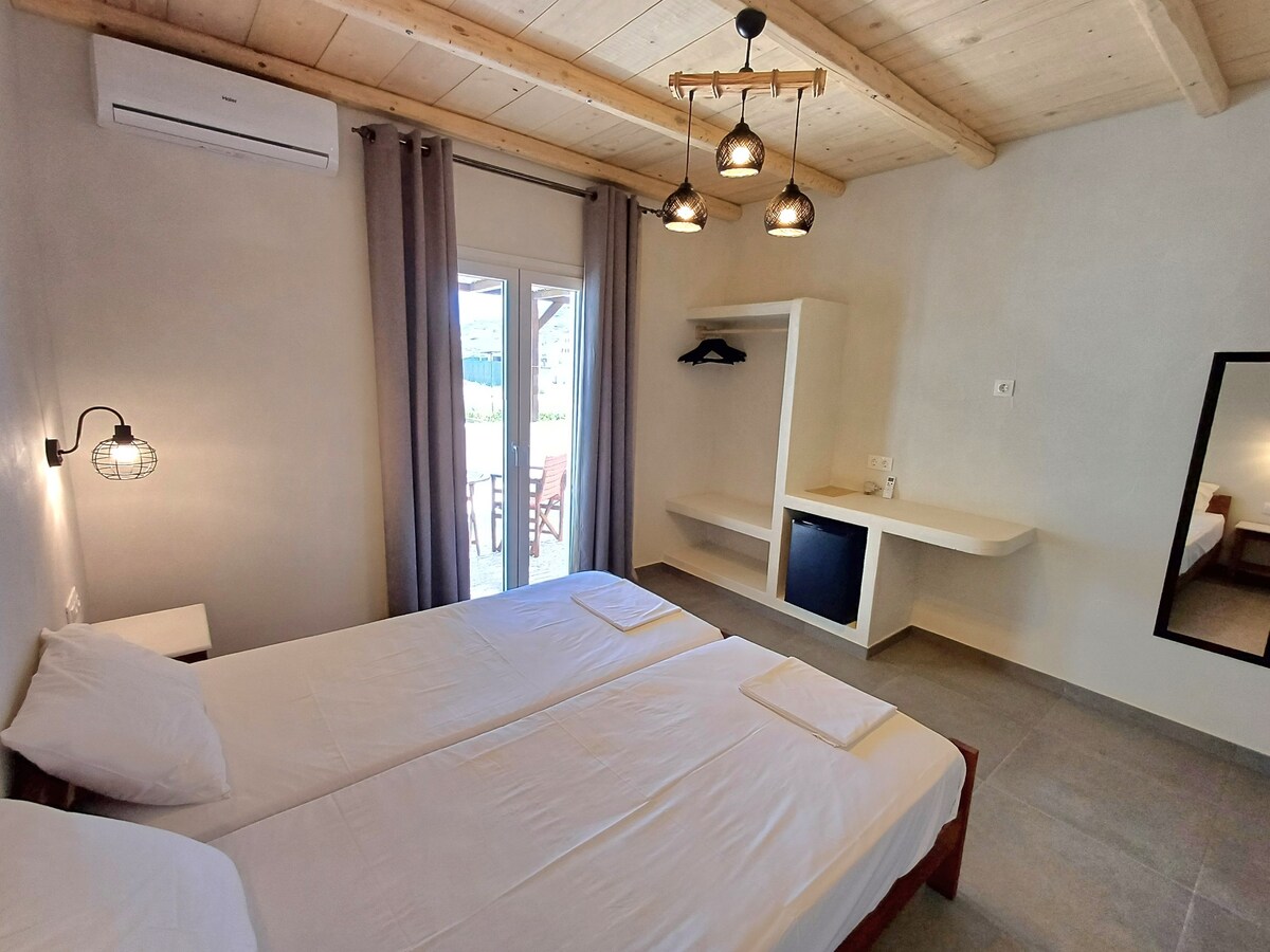 Villa Maria te asegura una estancia tranquila y agradable en la isla de Homero y Odyseas Elitis. Nuestra residencia está situada en la playa de Ormos. Villa Maria espera ofrecerte unas vacaciones de confort y hospitalidad griega, que te harán volver año tras año.