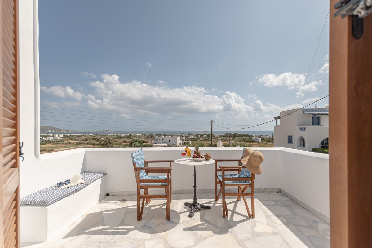 Quedate en el corazón de la ciudad de Naxos, a pocos pasos del castillo veneciano y de la playa. Disfrutá del café de la mañana en un balcón privado de estilo boho. Este elegante monoambiente cuenta con un dormitorio acogedor, un baño moderno y una cocina totalmente equipada. Con una ubicación ideal a poca distancia a pie de restaurantes, comercios y lugares de interés, es perfecto para una estadía relajante en la isla.