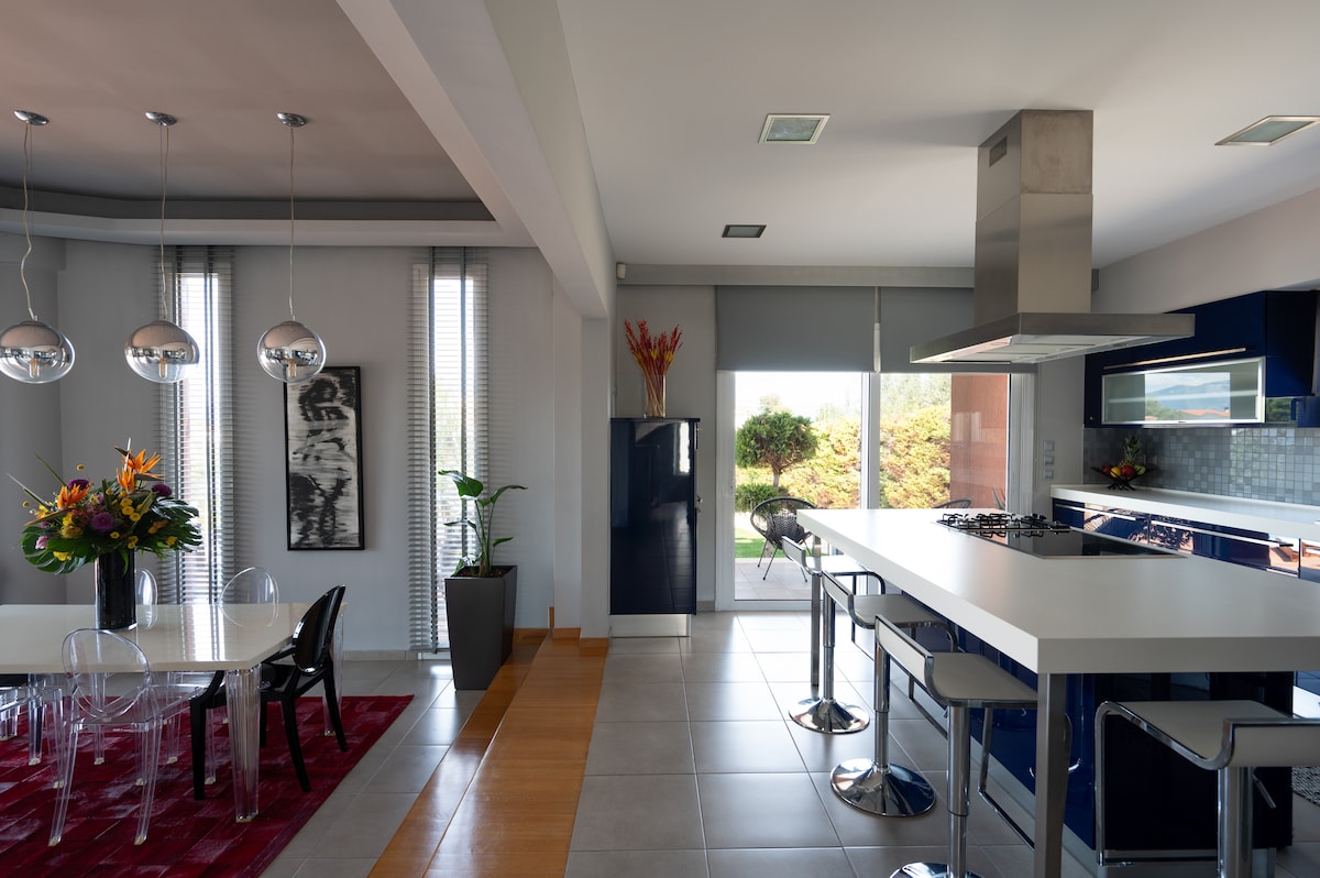 Una casa de campo moderna, un entorno elegante pero familiar para un lugar creado aquellos que buscan un ambiente tranquilo entre la naturaleza, la buena comida y la belleza. La isla de Evia ofrece la mejor solución para aquellos que quieren disfrutar de las vacaciones de verano cerca del mar, pero no quieren perderse todo el confort que ofrece la gran ciudad, a sólo 99 km de Atenas ,130 km del aeropuerto de Atenas. Amplios espacios privados al aire libre, con piscina privada y jardín. Vive una experiencia única, entre la cultura, la relajación y la naturaleza.