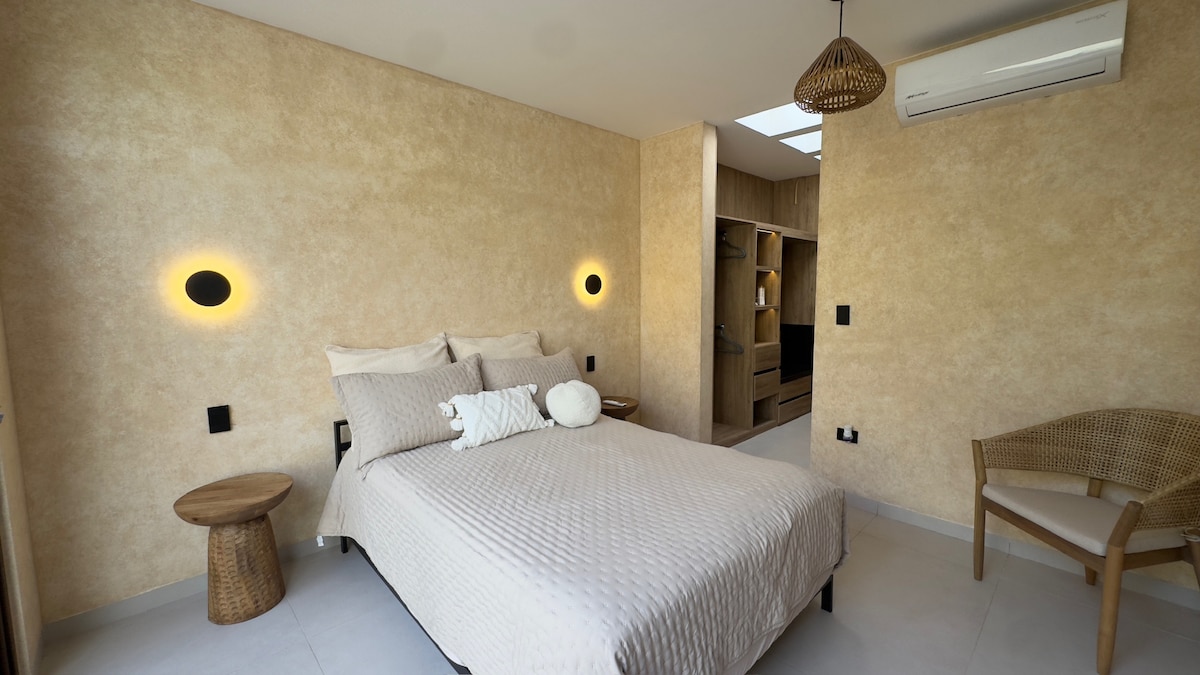 Bienvenido a Casa Zama, un refugio de calma y diseño inspirado en la naturaleza. Cada espacio ha sido creado para ofrecer descanso auténtico, con detalles artesanales, texturas cálidas y una atmósfera que invita a relajarse. Aquí encontrarás la armonía perfecta entre confort, estilo y privacidad. El jacuzzi cuenta con calentamiento solar y su temperatura puede variar según las condiciones del clima.