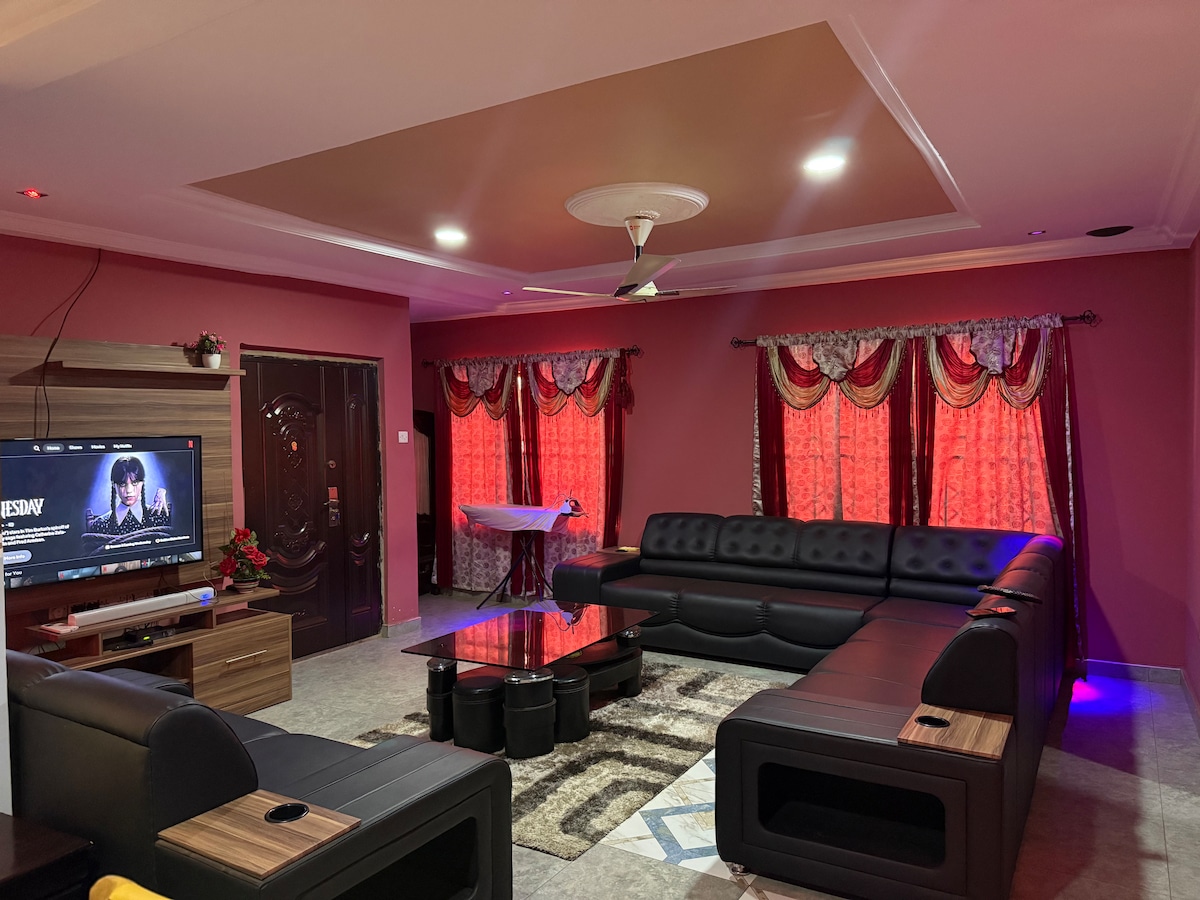 Este lugar único tiene su propio estilo. Siéntete como en casa en nuestro acogedor y moderno apartamento en el pintoresco justo en el corazón de Sunyani. Tenemos apartamentos de 1 y 2 dormitorios disponibles para tus viajes de negocios y familiares. El apartamento tiene habitaciones acogedoras con baños agradables e higiénicos y encantadora sala de estar, WIFI gratuito de alta velocidad, cocina totalmente equipada con lavadora, TV con canales internacionales, aire acondicionado y un nuevo interior moderno. Iluminación intacta y seguridad por la noche.