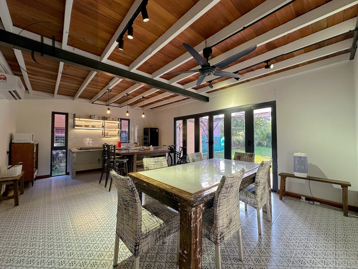 Nestled in the vibrant heart of Georgetown and surrounded by the calming embrace of Penang’s nature, Our Home offers a warm, Balinese-inspired cottage retreat for guests all year round. Thoughtfully furnished for comfort, the house features 6 beds and comfortably accommodates up to 10 guests. With its prime location, you'll find everything you need just a stone’s throw away, including major shopping malls (Komtar and Gurney Plaza), heritage sites, hotels, and a wide range of amenities.