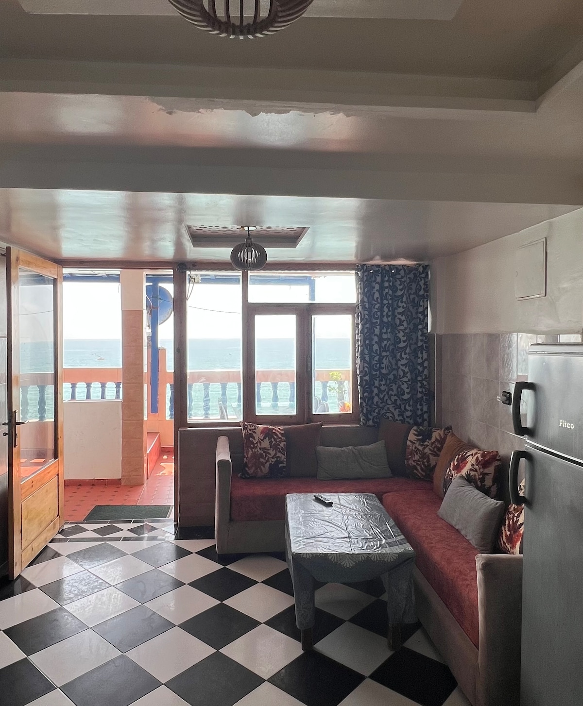 Disfrutá de un departamento luminoso y acogedor de un dormitorio con vistas panorámicas al mar y al atardecer, ubicado en el corazón de la bahía de Taghazout. Perfecto para parejas, surfistas, nómadas digitales o cualquier persona que busque paz, comodidad y tiempo de calidad. • Vista al mar y al atardecer desde el balcón • A 5 minutos a pie de la playa • Pileta, parque infantil y cancha de fútbol dentro de la residencia • Wifi rápido • Comunidad cerrada segura con seguridad las 24 horas, los 7 días de la semana. Vas a disfrutar de la combinación perfecta entre calma, vibras oceánicas, energía del surf y comodidad.