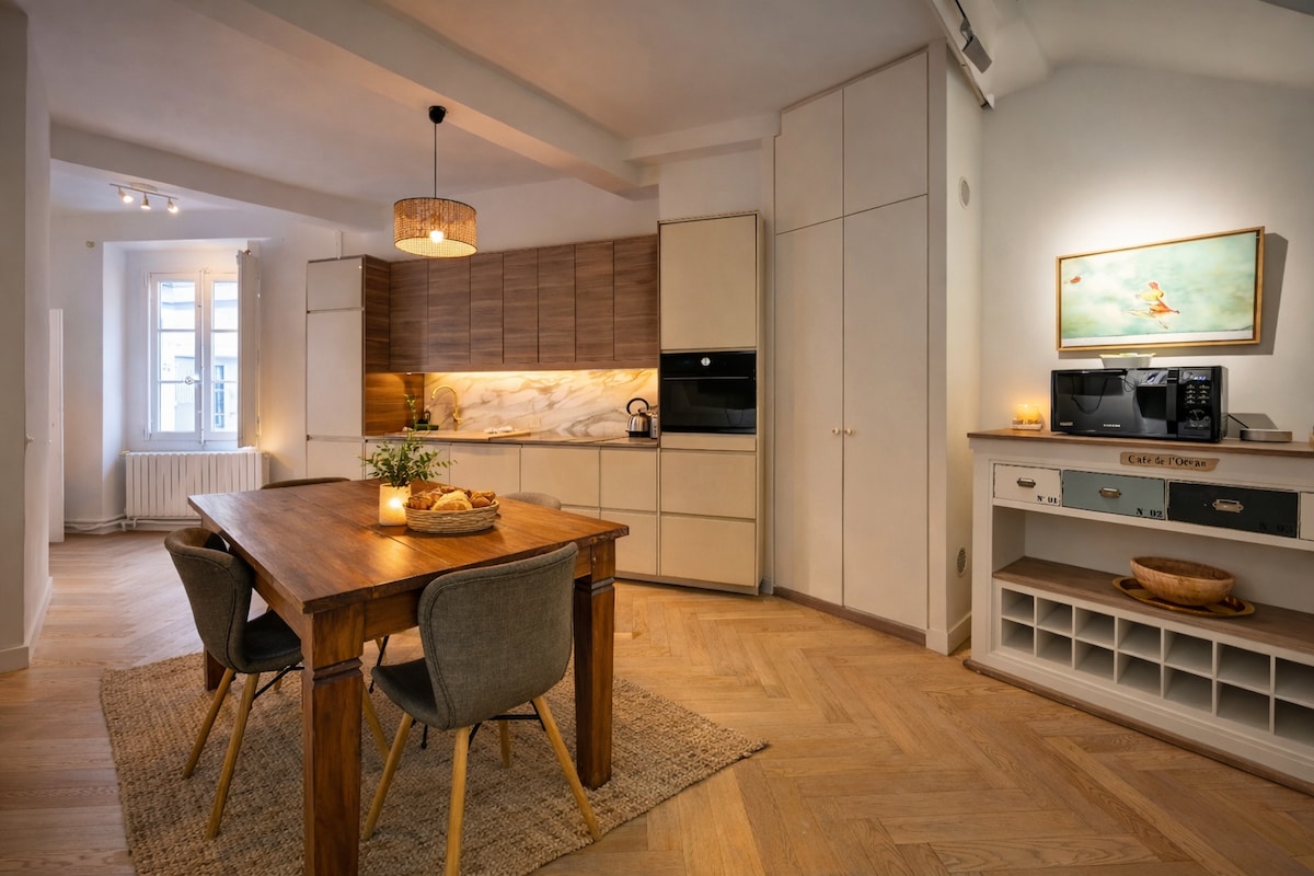 Located in the vibrant Prêcheurs district, this family-friendly luxury apartment sits on the 3rd floor (no elevator) of a historic townhouse. Carefully renovated, it offers rare views over a private garden, providing exceptional calm in the city center. Fully air-conditioned, it combines boutique-hotel comfort with a warm, elegant atmosphere and hotel-style services. A true urban retreat—quiet, central, and spacious.