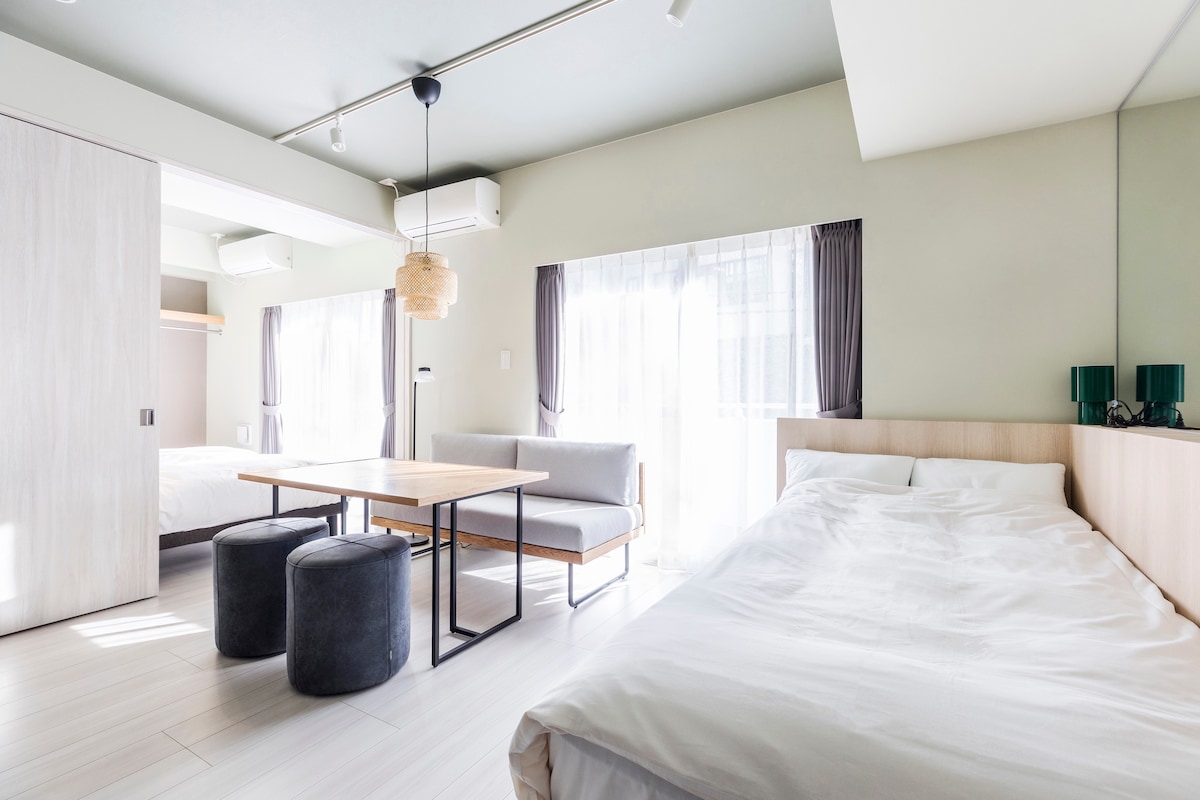 Estudio Japandi tranquilo y nuevo|Cerca de JR・Subway|Lavado y secado todo en uno|Ascensor|Almacenamiento de equipaje