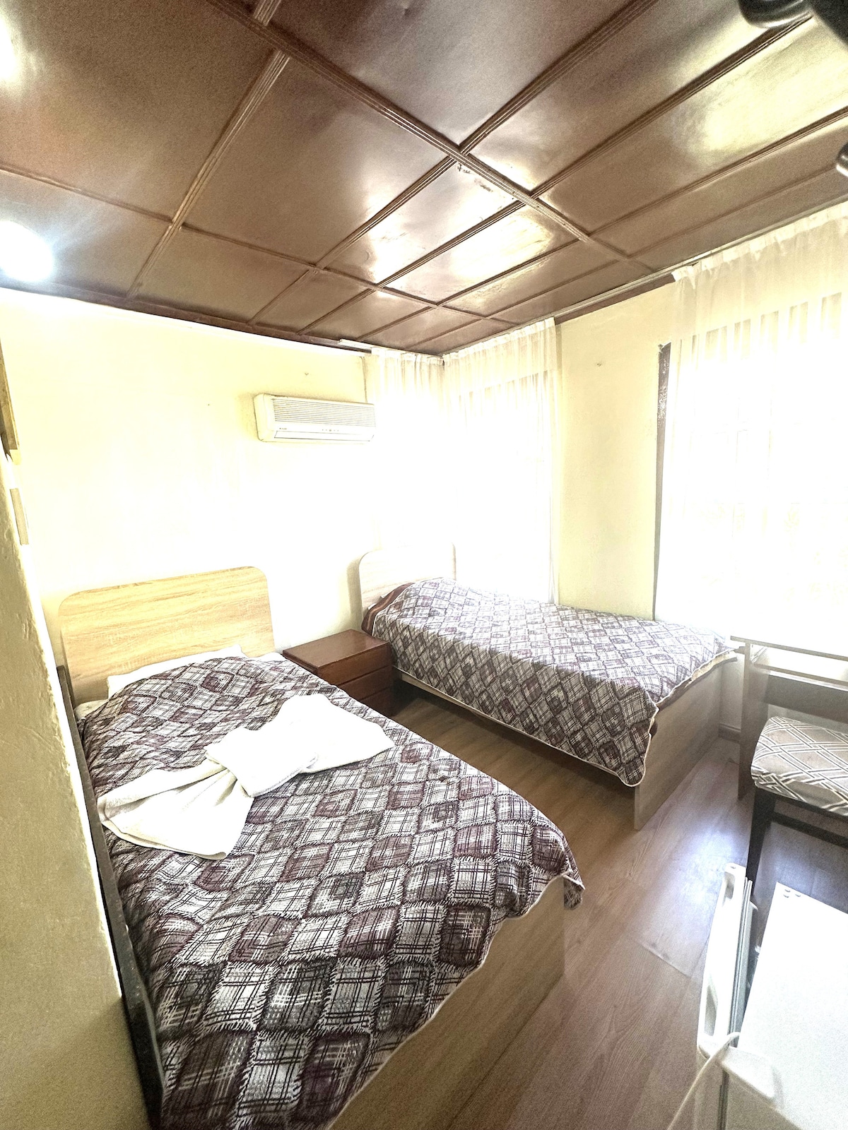 Mi casa es una casa antigua con 2 plantas para un máximo de 5 personas con sus 2 dormitorios, 1 sala de estar, 1 cocina, 2 baños, 1 jardín y 1 terraza. Para que te sientas como en casa con los familiares y los amigos. En la casa puedes encontrar todo lo que necesitas. Se puede llegar al dormitorio de arriba desde las escaleras del jardín. Yo mismo diseñé la casa. Tiene un aspecto histórico con madera rústica y camas cómodas y acogedoras. Hay aire acondicionado en ambos dormitorios y en la sala de estar con opciones frías y calientes.