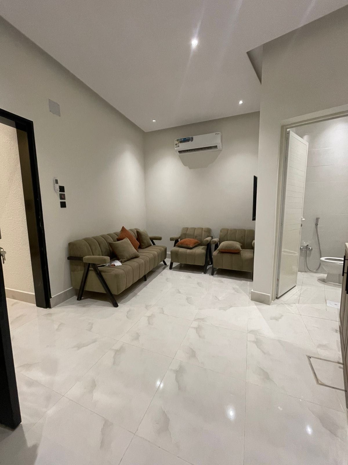استرخ في هذا المسكن الفريد والهادئ. شقه بتصميم حديث تحتوى على غرفه نوم بسرير ماستر بمفرش فندقي وصاله مساحه واسعه بتلفزيون ذكي80 بوصه بدعم اشتراك نت فلكس ومجهز ثلاجه وايضاً يوجد بار قهوة وشاهي وغلايه وادوات الشاي ودورة مياة مجهزة بالكامل بالاضافة الي دخول ذاتي ومدخل سيارة خاص مع حوش بجلسة خارجية الموقع مميز قريب جميع الخدمات كلية التقنية والقاعدة والمعهد
