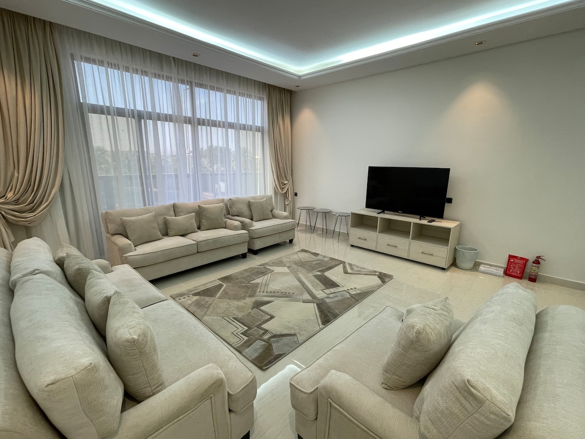 Disfruta de toda la familia en este elegante lugar. Apartamento de lujo moderno * Diseñado y preparado para encontrar tu comodidad * Dos habitaciones ( principal /habitación 3 camas) y un amplio salón abierto a la cocina moderna Diseño elegante (pantalla Samsung Smart WiFi) Cocina totalmente equipada. - Refrigerador. - Horno + microondas + lavadora - Todos los suministros de cocina están completos. - Estufa (a gas / electricidad) Además de la ubicación destacada A 8 minutos en coche de la estación de tren. A 10 minutos en auto del aeropuerto. A 5 minutos en auto de la mezquita de Quba. A 15 minutos en auto de la mezquita del Profeta.