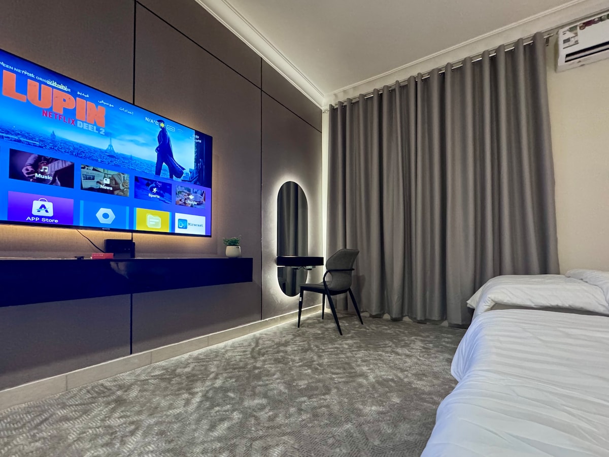 Antes de amueblar, me puse en el lugar del huésped y busqué todo lo que fuera cómodo para el cuerpo y la vista, y la elección se hizo en consecuencia El apartamento se caracteriza por estar en un lugar tranquilo y cerca de cafeterías y todos los servicios Entrada inteligente con código Hay un dormitorio con una cómoda cama doble y otro dormitorio con 2 camas individuales Hay un salón con un cómodo sofá y una pantalla de 70 pulgadas Cuenta IPTV disponible para ver partidos, películas y series Hay wifi. Cocina equipada con nevera, hervidor, cafetera y microondas Le deseamos una estancia agradable en el apartamento de lujo Subat