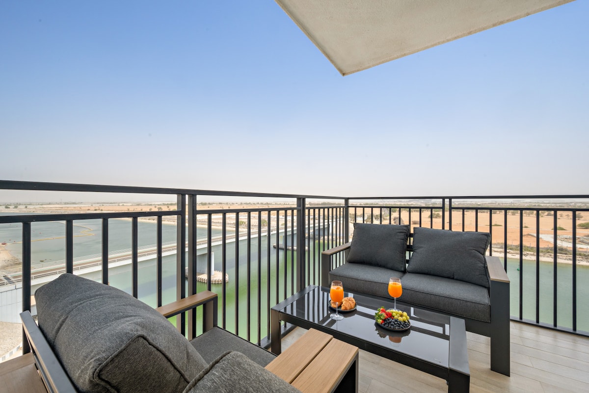 • Artistically inspired and serene • Open layout with kitchenette, lounge, workspace, double bed alcove • Huge balcony for cozy mornings and evenings • High-speed WiFi, smart TV, air conditioning • ~11 km (≈ 13 min) to Yas Island and the Yas Marina F1 circuit (Abu Dhabi Grand Prix) • ~5 min drive to Abu Dhabi International Airport • ~100 km to Dubai (≈ 1h drive) • Self check-in, 24/7 support, ideal for business, racing fans or leisure stays