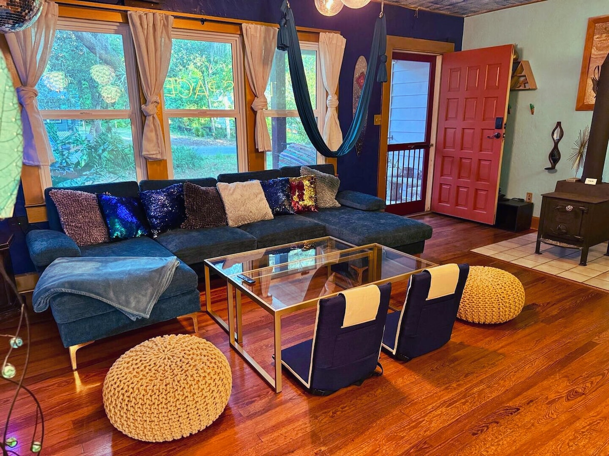 ¡Convenientemente ubicado a solo 10 minutos a pie del centro de la ciudad y a 5 minutos en coche de UF! ¡Toda la casa, 2 dormitorios/1 baño, 2 colchones tamaño king, 1 sofá cama, patio trasero privado, porche protegido y mucha luz natural! Ubicado en un barrio tranquilo, es un oasis dentro del distrito de alojamientos con desayuno incluido. Haz que sea tu hogar si vienes a un partido de Gator, por negocios, graduación o simplemente de paso. Puedes hacer una hoguera en el patio trasero o relajarte en el interior y disfrutar de las obras de arte originales realizadas por el propietario de la casa.