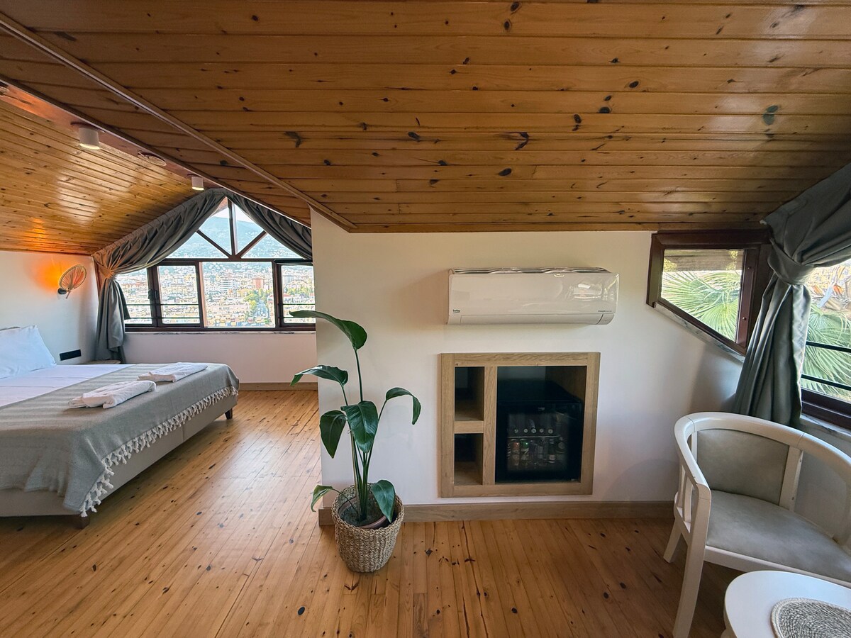 Este hotel de 10 habitaciones en el castillo de Alanya ofrece impresionantes vistas al mar, un desayuno totalmente natural, ubicación céntrica, habitaciones cómodas y elegantes y una pequeña piscina jacuzzi para relajarse después de un largo día de aventura.