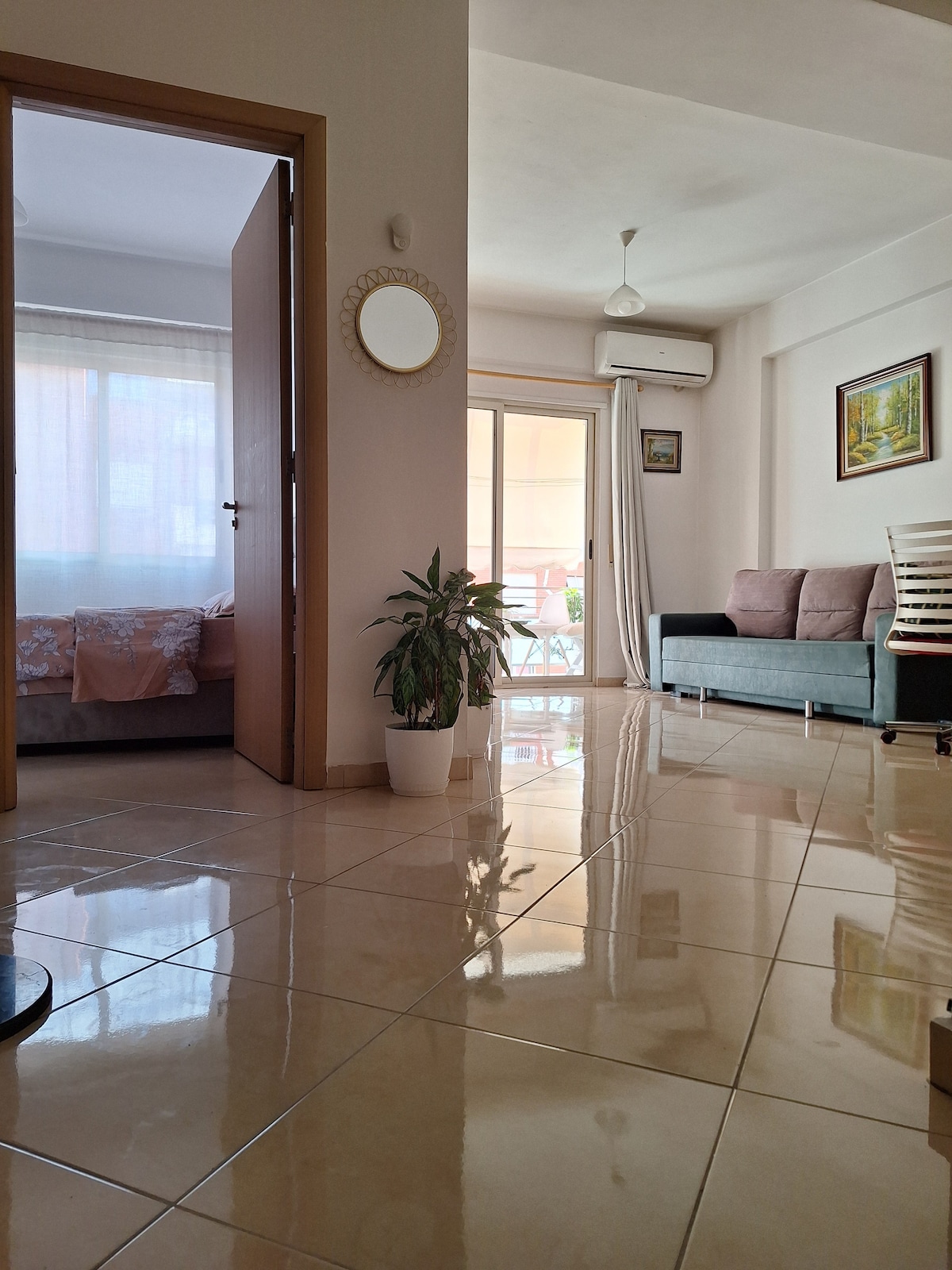 ¡El apartamento más cercano a la playa de Vlorë que encontrarás! Perfecto para familias y parejas. ¡Con impresionantes vistas panorámicas desde los 2 balcones y todos los lujos como aire acondicionado, cocina totalmente equipada, Smart-TV, bicicletas gratuitas, etc. para darte unas vacaciones memorables! La mayoría de los apartamentos de Vlorë están separados del mar por una carretera transitada, peligrosa y cargada. Sólo un puñado de lugares como este tienen el lujo de tener una carretera detrás del edificio en lugar de en la parte delantera. ¡Lo que hace que este lugar sea superior!