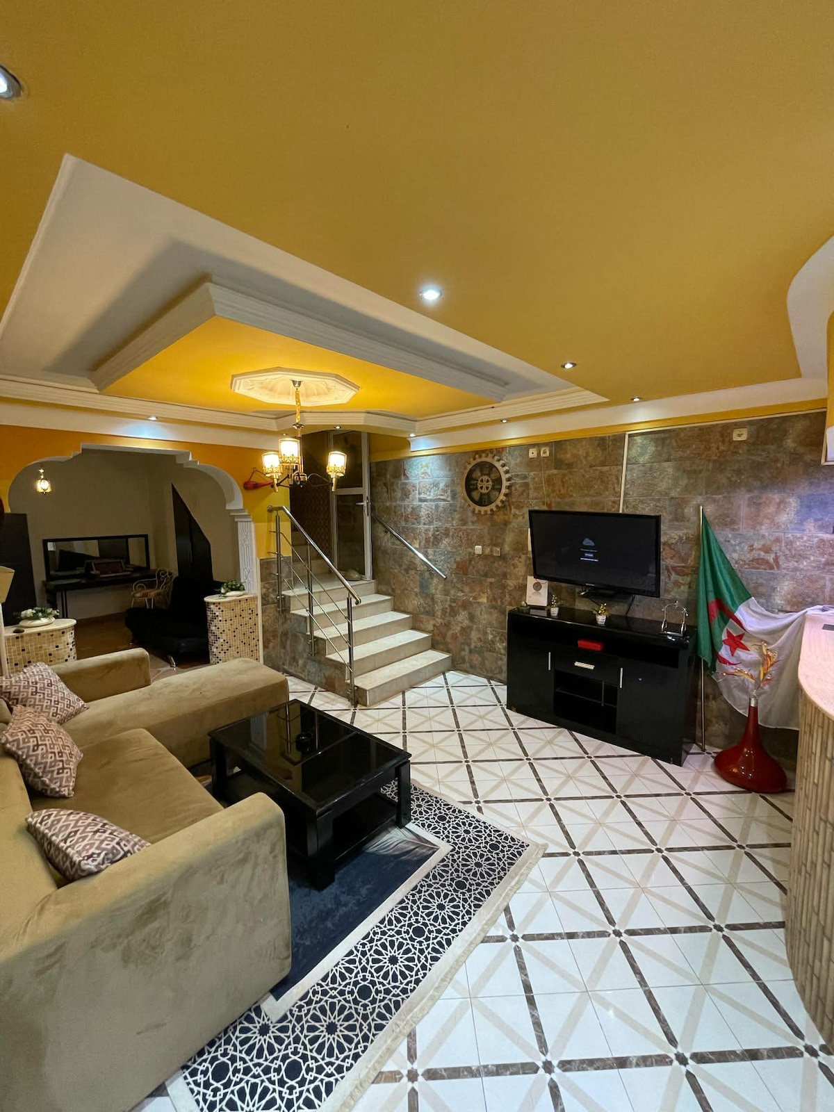 Hola, 👋 la residencia Nelson ofrece un F2 de 130 metros, en el tercer piso con 3 terrazas con vistas a toda la ciudad y, en particular, a la mezquita de Argel. Es impresionante. La residencia está situada a 20 minutos del centro de Argel y a 10 minutos del aeropuerto, a 10 minutos de la playa, playa de arena conveniente para su viaje a Argel. El alojamiento dispone de acceso a wifi gratuito, televisores de pantalla plana, 43 pulgadas, 2 aires acondicionados, refrigerador, microondas, cafetera, espresso, cocina, lavadora.
