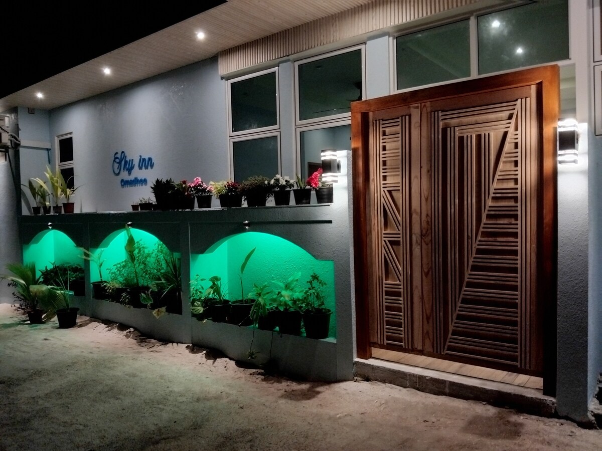 Welcome to Sky Inn Omadhoo, where you can escape into the tranquility of our beachfront sanctuary. Immerse yourself in the stunning ocean views and exceptional hospitality.