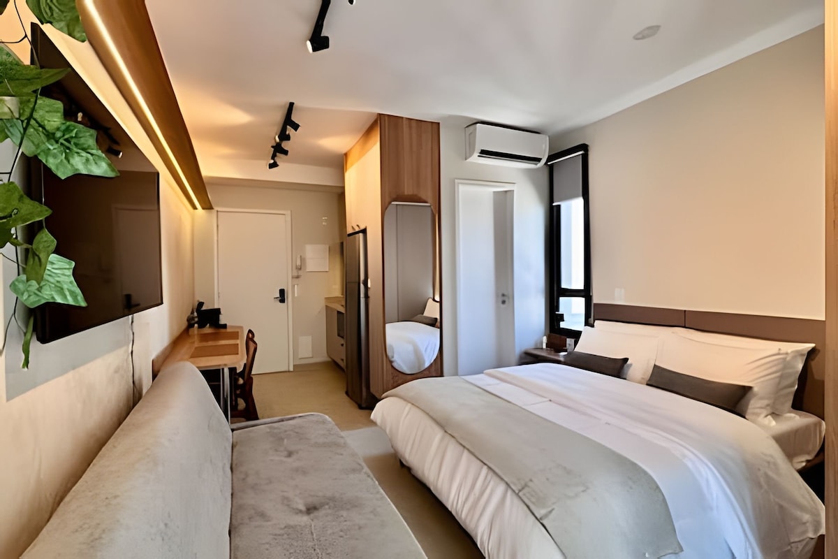 Estudio 40011: a 4 minutos del Allianz Park. Estudio compacto, moderno, completo y cómodo en una de las regiones más culturales de São Paulo. 📍 Rodeado de cafés, restaurantes y espectáculos. Acá late el corazón de la ciudad ✨ Cama cómoda, encimera, armario, aire acondicionado, TV y cocina equipada con sándwichera, freidora de aire, cafetera, cocina, heladera. 🚿 Baño privado e iluminación acogedora. Con esa sensación de “quiero quedarme un poquito más” Perfecto para disfrutar, descansar o trabajar. ¡Reservá ahora!