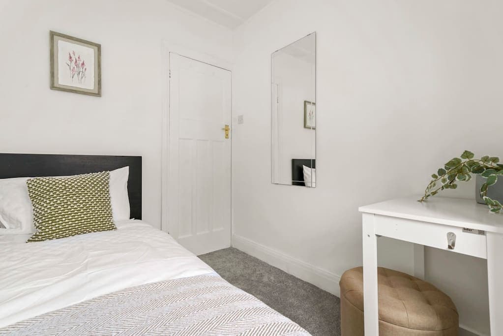 Luminoso y tranquilo departamento de 1 dormitorio a solo 5 minutos a pie (0,2 millas) de la estación de Greenford (línea central), con acceso directo al centro de Londres. Cerca del estadio de Wembley para conciertos y eventos. Ideal para parejas, viajeros solitarios o estancias de negocios. Totalmente equipado, con wifi rápido, Smart TV y todo lo que necesitás para una escapada cómoda a la ciudad.