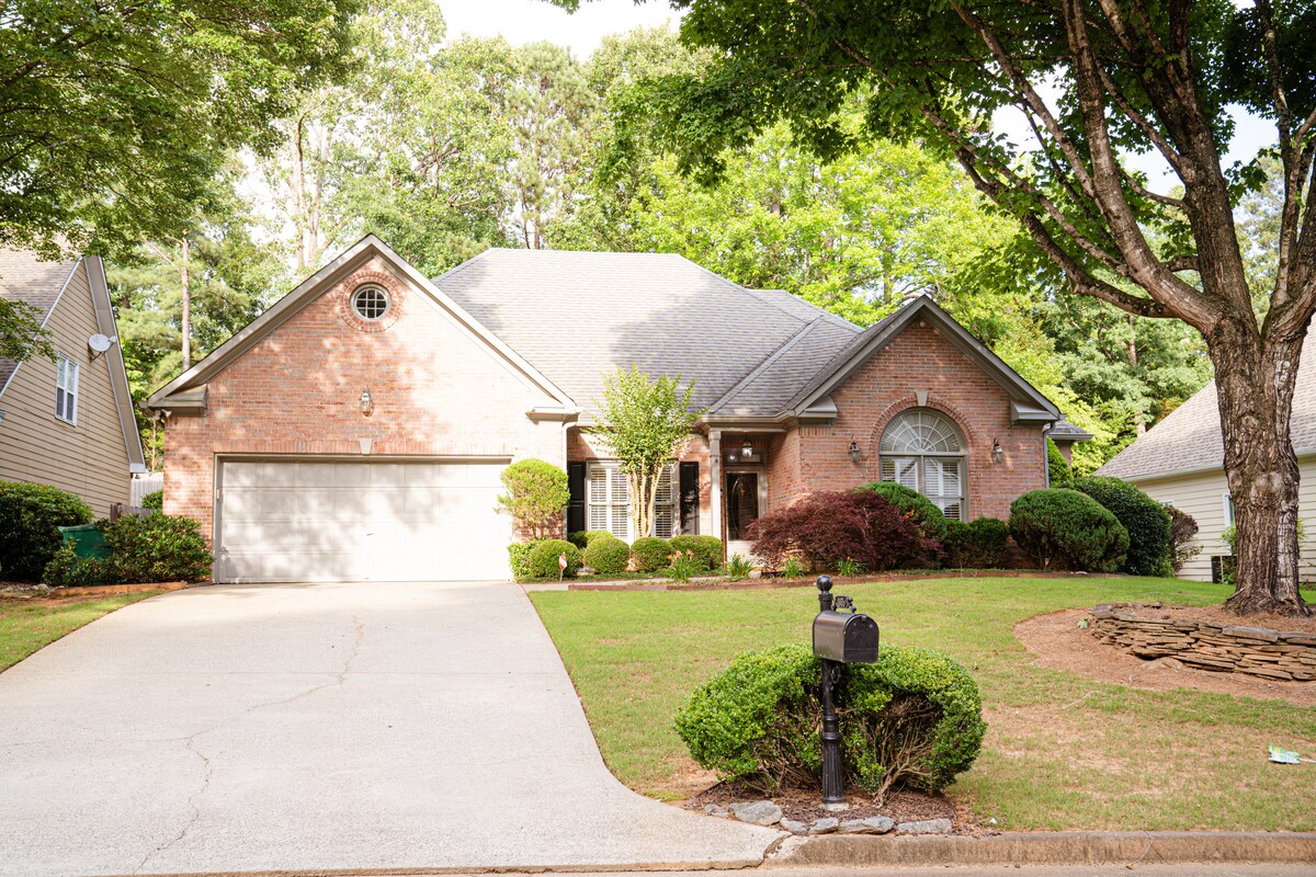 A POCA DISTANCIA A PIE DEL CENTRO DE ALPHARETTA Esta casa recién renovada es la opción perfecta para aquellos que buscan una estadía cómoda y conveniente. Tendrás fácil acceso a los mejores restaurantes, tiendas y entretenimiento de la ciudad a poca distancia. Nuestro alojamiento cuenta con: - Cocina totalmente equipada: nuevos electrodomésticos Samsung y Nespresso. - Habitaciones cómodas: camas King y Queen con ascensores. - Oasis al aire libre: patio trasero grande con parrilla y fogata - Entretenimiento: televisores inteligentes o Apple TV en todas las habitaciones. Cornhole y juegos de mesa.
