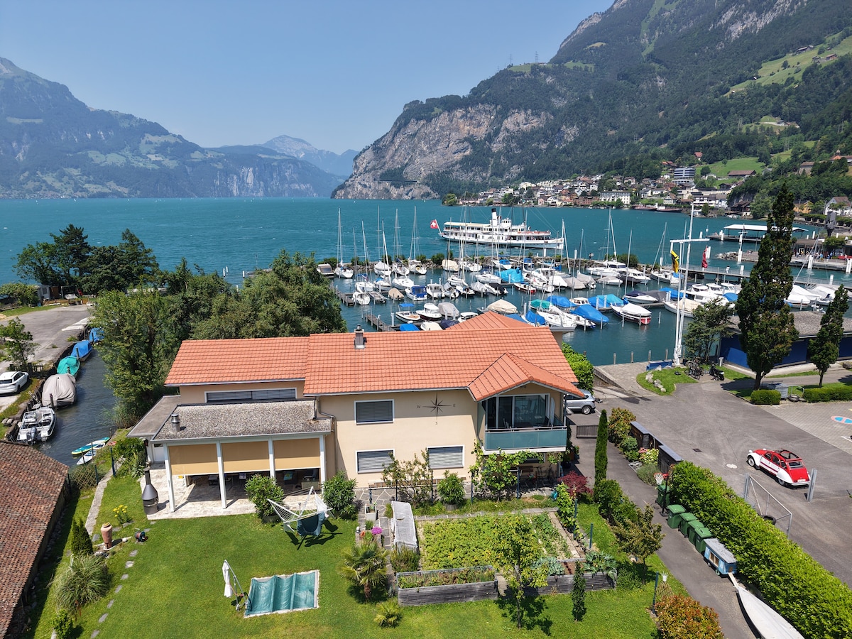 El apartamento está situado directamente en el lago de Lucerna, sin ningún camino o carretera pública en medio. Balcón con vistas maravillosas al lago, terraza privada directamente en el lago y acceso privado al lago. Lucerna está a unos 40 km y se puede llegar en coche, autobús, tren e incluso en barco. Zúrich está a unos 70 km de distancia. El impuesto turístico y la limpieza final están incluidos en el precio.