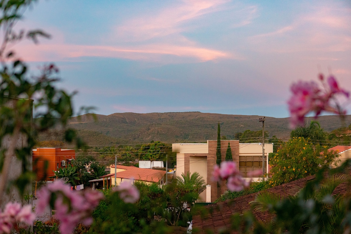 Quintal das Flores se encuentra dentro de una villa de 3 casas. Una suite con cocina, acceso compartido al patio trasero y un hermoso jardín. Para aquellos que les gusta la paz y la tranquilidad, junto a la Iglesia en la primera calle del Alto Paraíso. Cuando te hospedes aquí, siéntete invitado a dar un paseo por la ciudad y disfrutar del silencio y la paz de este pequeño rincón. * A 4 minutos a pie del Centro del Alto Paraíso. *Camino a la cascada de Loquinhas, y ángeles y arcángeles.