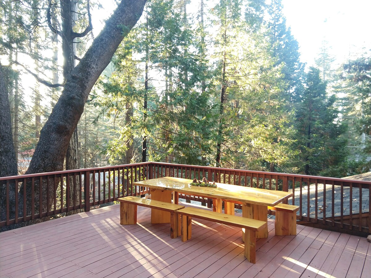 * INCREÍBLES VISTAS desde este lujoso y GRANDE chalet de 3 pisos en BLUE LAKE SPRINGS * CAMINA 1/2 milla hasta la piscina privada de Blue Lake Springs, lago, tenis, pickle ball, playa, restaurante y más * JACUZZI privado con vistas * Gran SALA DE RECREACIÓN con mesa de billar, ping pong, air hockey, dardos, 3 salas de juegos, chimenea de gas, TV, futbolín * Generador de toda la casa, lo que significa que no habrá más cortes de energía * Aire acondicionado * ENORMES televisores de 70 pulgadas * A 30 minutos de Bear Valley Skiing, a 10 minutos de Big Trees * ¡Se admiten perros! *RESERVA 3 NOCHES Y OBTÉN LA 4.ª GRATIS EN OCTUBRE. ¡ENVÍAME UN MENSAJE PARA CONSEGUIR LA OFERTA!