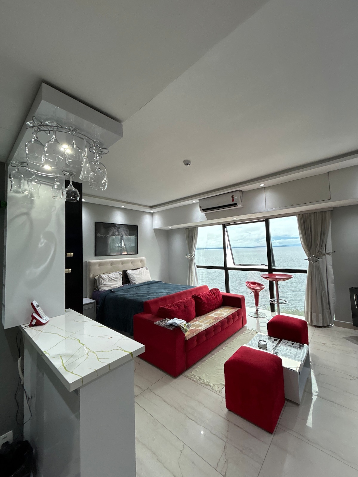 Disfruta de una experiencia inolvidable en Manaus alojándote en un exclusivo apartamento en el Tropical Executive Hotel, con un balcón gourmet privado y una vista impresionante de la puesta de sol en el Río Negro. ¡Un espectáculo de la naturaleza todos los días, en la comodidad de tu espacio! LO más destacable del apartamento: Balcón gourmet Vista panorámica del Río Negro Acogedora suite con cama tamaño queen y aire acondicionado Televisor Sofá cama Microondas, nevera y utensilios Juego completo de sábanas y una limpieza impecable.
