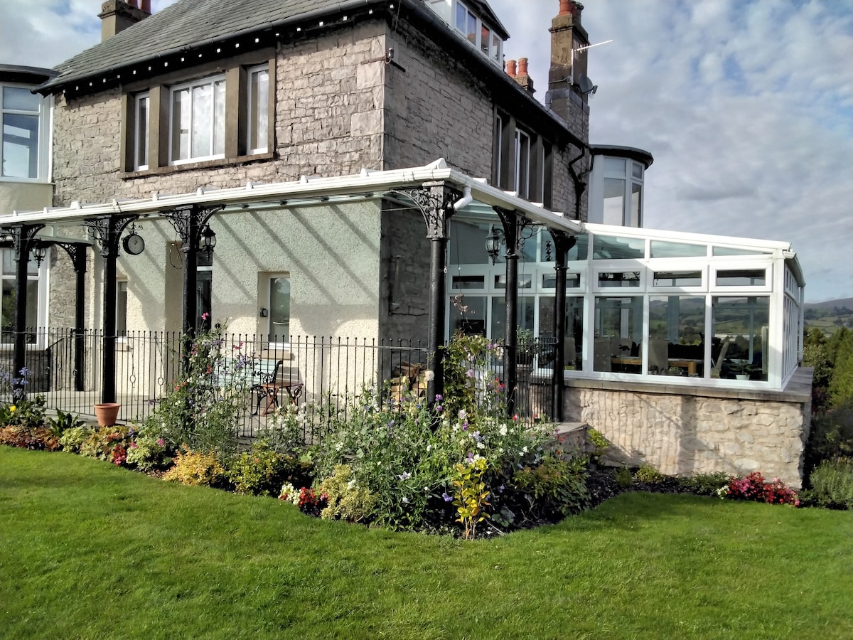 Private guest suite has bedroom with super king OR twin beds, + bed/sitting room with full size single day bed. Electric blankets + ample heating in winter. Fans in summer. TVs in both rooms. Kitchenette and Jack and Jill bathroom. Comprehensive continental breakfast in conservatory ( dining room on cool days) Lovely garden for guests to enjoy. *Kendal town centre is a 15 minute riverside walk *Walks from the house *Windermere just a 15 minute drive *Carus Green golf course 2 min drive
