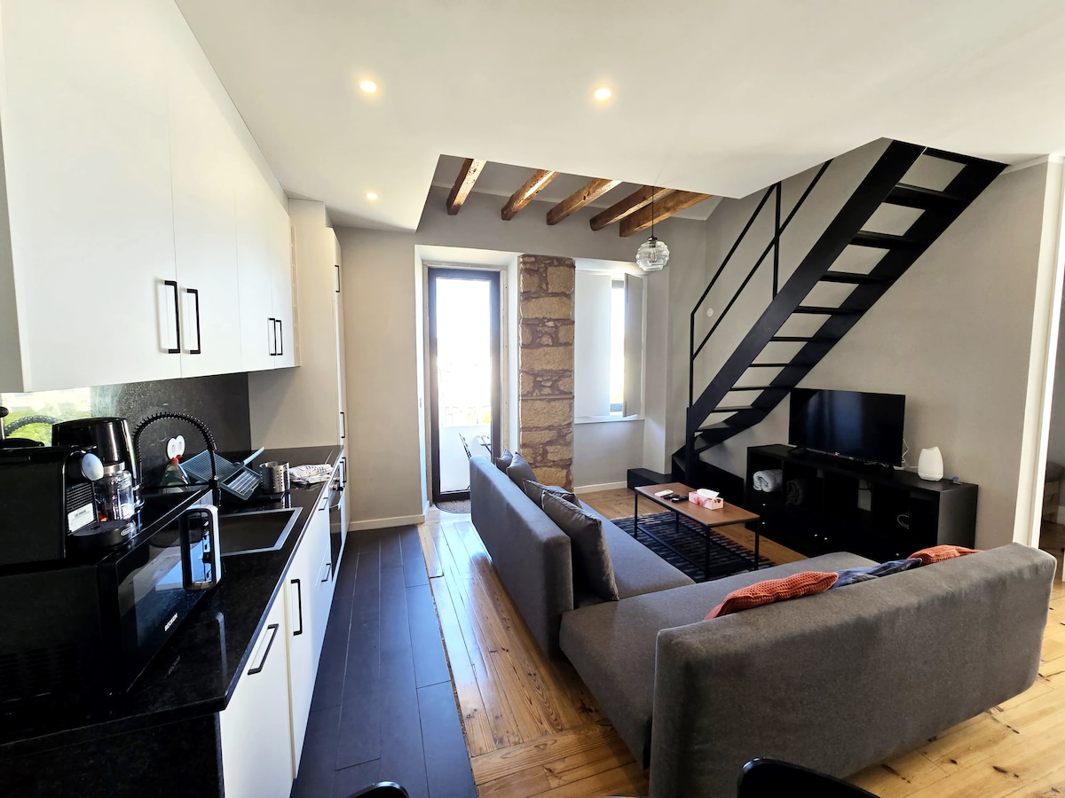 Apartamento dúplex en el último piso de un edificio de 1900, con 1 dormitorio, 1 zona de trabajo, y 2 baños, ubicado en la calle principal de Coimbra. Esta ubicación es increíble!, es el centro de todo y puedes caminar a todos lados. Ofrece un ambiente relajante y magníficas vistas al centro histórico y a los tejados de la ciudad. Estarás justo en el Patrimonio Mundial de la UNESCO, con toda su cultura y vida. Es el lugar perfecto para quedarse. Limpio y seguro, como tu hogar ♡