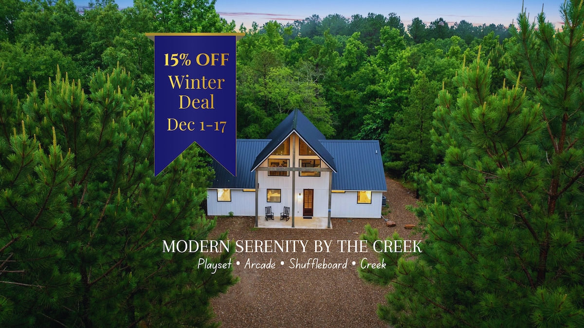 ¡✨ Escapate a Modern Serenity by the Creek, una cabaña de lujo de 2 dormitorios en Hochatown! Capacidad para 8 personas con 2 suites King + 2 sofás cama, bañeras de hidromasaje, shuffleboard y arcade retro. Relajate en el jacuzzi, columpiate junto al arroyo o reunite con los tuyos alrededor del fuego. Cuenta con chimenea al aire libre y TV inteligente, juegos, cafetería y un terreno boscoso de 1 acre. Se admiten mascotas y está a pocos minutos del lago Broken Bow, Beavers Bend, bodegas y restaurantes. ¡Perfecto para familias, parejas o escapadas de amigos!