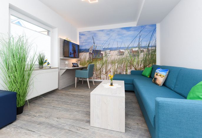 Die Ferienwohnung Friesenblau EG bietet auf 150 m² viel Platz für bis zu 8 Personen: 4 Schlafzimmer, 3 Bäder mit Dusche (teils mit Wanne) sowie Wohn- und Essbereich. Die Sauna zur Eigennutzung und ein Fitnessraum machen Ihren Urlaub perfekt. Haustiere erlaubt, Nichtraucher.