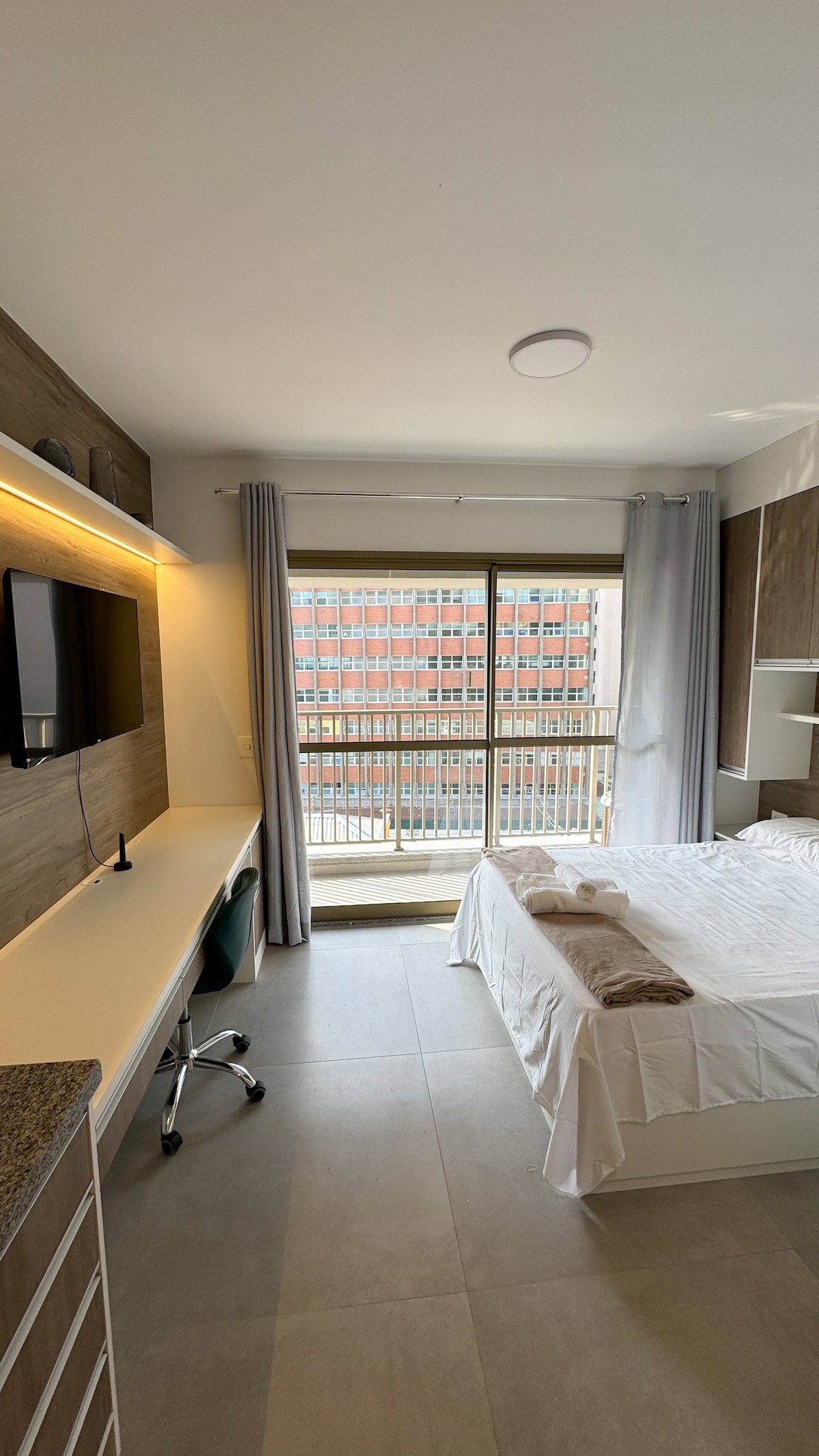 Moderno y funcional estudio de 23m² con una cama queen súper cómoda. Encantador balcón, wifi rápido, aire acondicionado, TV inteligente y cocina equipada para darte la bienvenida con practicidad y estilo. Ubicación estratégica: entre Av. Paulista y el parque Ibirapuera, rodeado de buenos restaurantes, hospitales y universidades. Ideal para aquellos que quieren relajarse, trabajar o disfrutar de SP con comodidad, seguridad y todo al alcance.