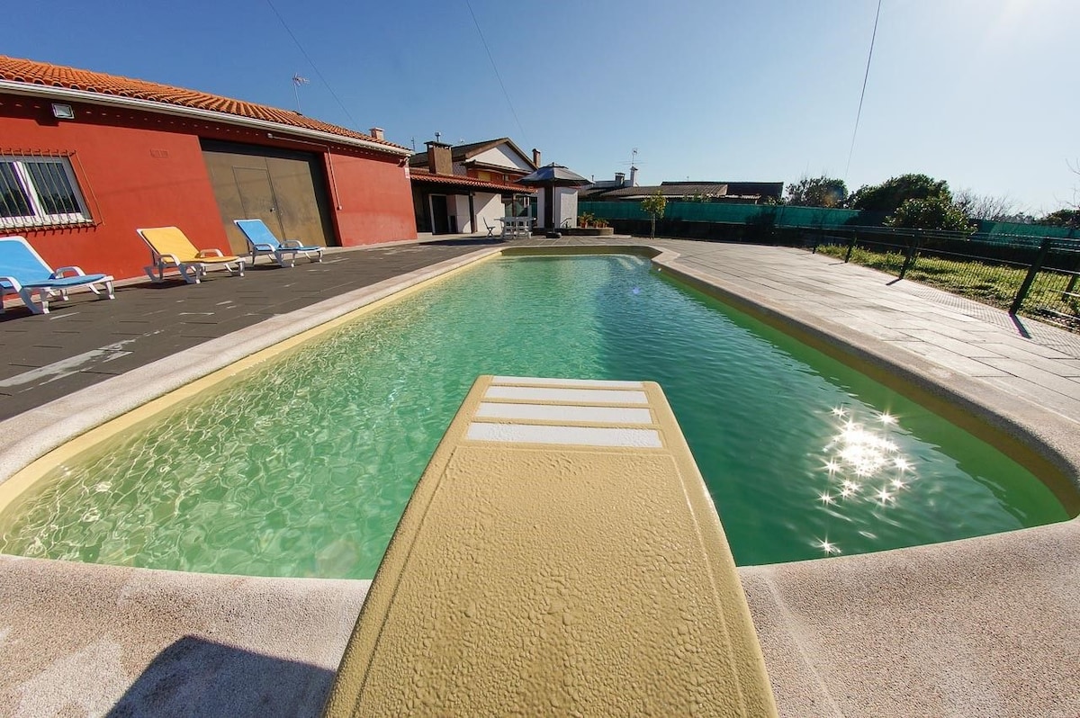 Alojamiento moderno totalmente privado, jardines y nueva piscina de 10x5 metros con cascada son exclusivos, aparcamiento privado en el jardín. Casa con 1 cama doble en cada habitación y un sofá cama en la sala de estar, en total se aceptan 6 personas, 2 personas por cama y sofá. Calefacción central de radiadores para los días más fríos. Terraza con mesas de jardín, tumbona Internet WIFI, televisión por satélite, 1 televisor en cada habitación. El alojamiento «HOME S&F-Ponte de Vagos»: tómate un descanso y relájate