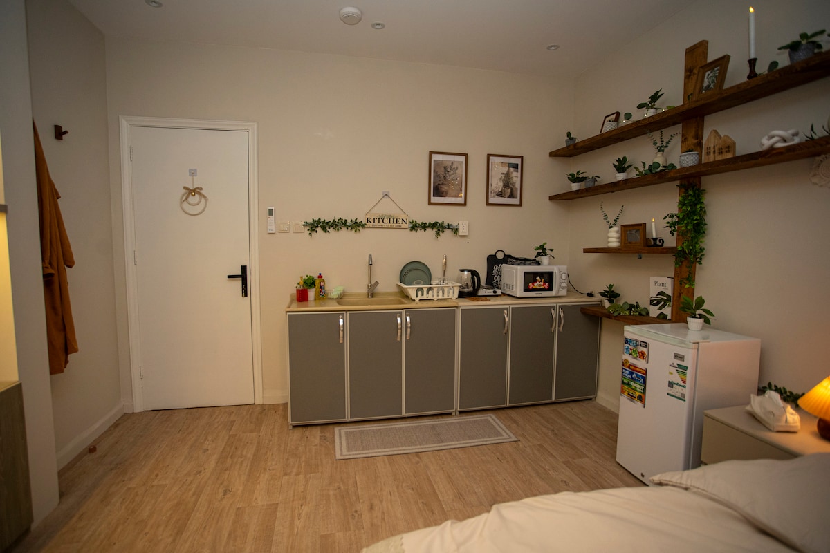 Este departamento limpio y cómodo es ideal para parejas, viajeros solos o huéspedes de negocios que buscan una estadía limpia y tranquila. Diseñado para la comodidad, el alojamiento está equipado con un cómodo sofá Bella de Mutlaq Furniture, una red Wi-Fi de alta velocidad, un televisor inteligente y una cafetera Nespresso. Acceso de los huéspedes Acceso fácil al departamento de arriba con cerradura digital Otros aspectos a destacar Este es un edificio residencial y un barrio tranquilo. Tené en cuenta los niveles de ruido al llegar y salir. No se permiten eventos ni fiestas en absoluto.