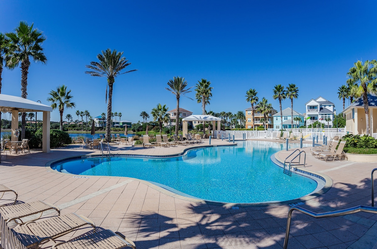 Oasis en Palm Coast: piscina solar, spa, sauna y solárium