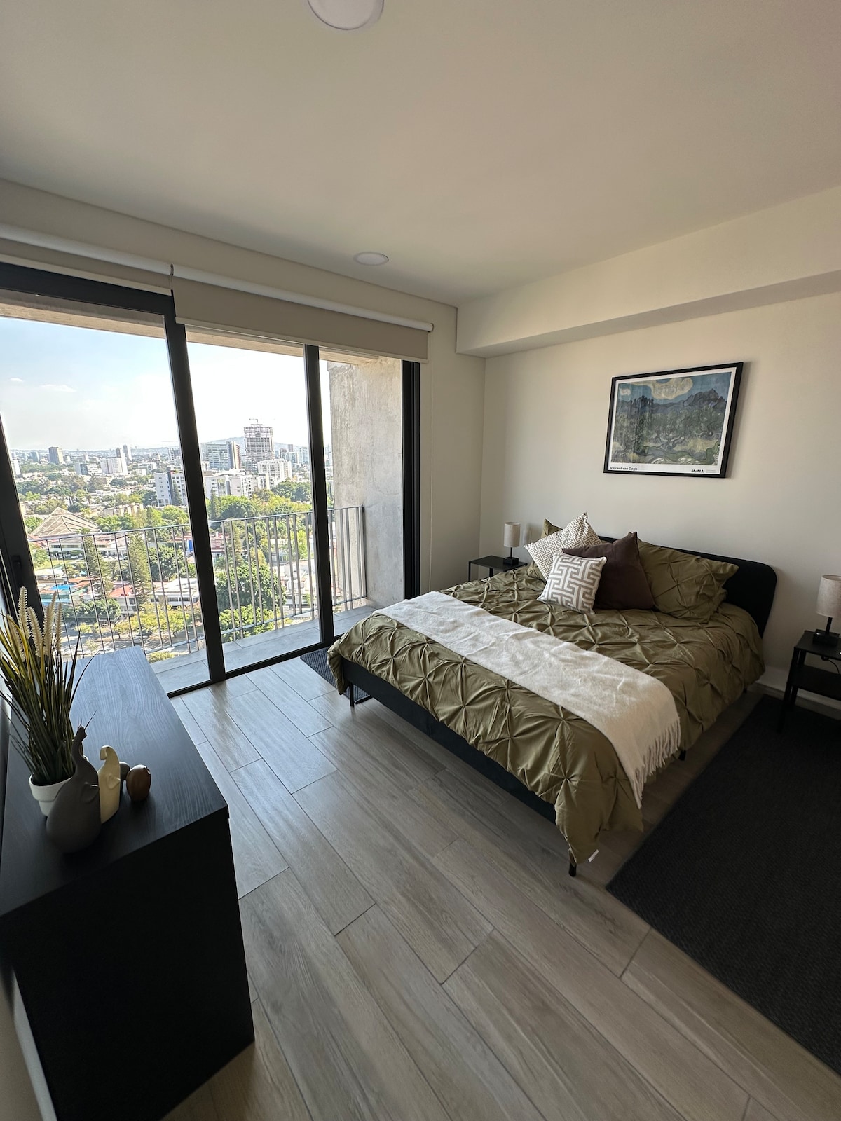 - Piscina de natación en el piso 22. - Hermoso gimnasio con vistas a la ciudad. - Totalmente equipado para estancias largas. - Estacionamiento disponible (con costo adicional) - Servicio de limpieza: una vez a la semana para reservas de más de 7 noches. Este estudio de lujo con balcón cuenta con todo lo necesario para tu estadía. Ubicado en una nueva torre de lujo en el barrio de Providencia, cerca del centro comercial Midtown Jalisco.