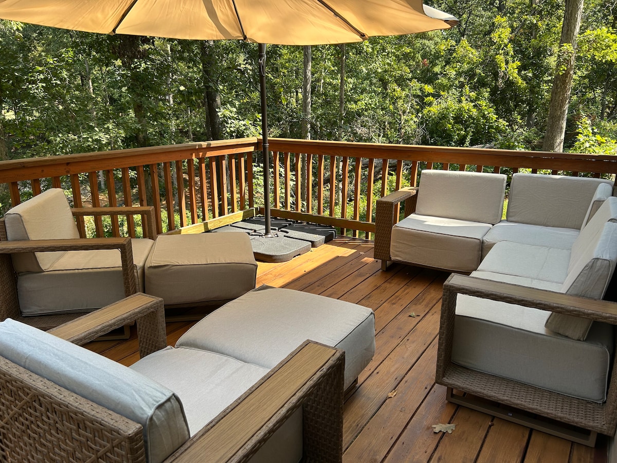 What You’ll Love! Everything Is Brand-New & Fresh Gourmet, Fully-Equipped Kitchen, Including Stainless Steel Appliances, Glasses, Plates, Silverware Peaceful Location, Large Six Car Parking Lot Private Outdoor Space With Grill, Fire Pit and Hot Tub-READ GUEST SAFETY Large Flat Screen TV Oversize Couches 1 King Bed, 2 Queen Beds, 2 Bathrooms, One Office Space Allergy Sensitive With No down, Feathers, Carpets New Smart Washer/Dryer Vintage Touch Activated Lamps With USB Connection In All Rooms