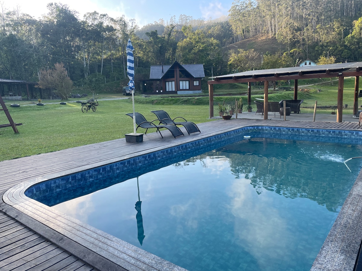 Experiência de conexão com a natureza, são 44 mil metros quadrados de propriedade disponibilizada para caminhada, pesca, banho de piscina 🏊♀️ e ribeirão, utilização do salão de jogos com sinuca, pebolim e parque infantil. Temos quadra de areia. São 5 casas para locação. O Recanto Vida Boa é ideal para descanso e desfrute da natureza, pássaros sempre com seus sons únicos e ar puro. Obs.: de segunda a sexta ocorrem as manutenções no recanto. Segunda e terça a piscina fica indisponível para uso.